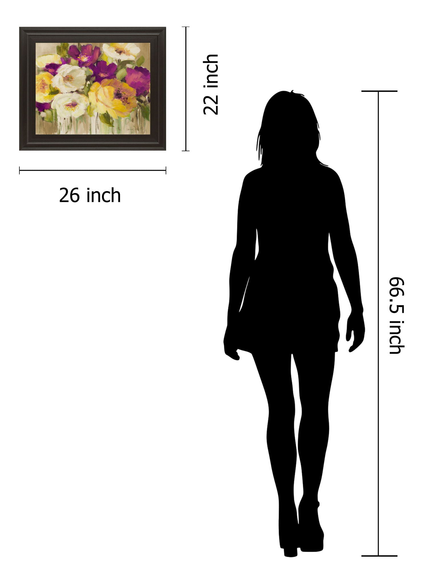 This captivating floral composition brings a burst of life and color into any space with its vibrant purples, yellows, and creamy whites. The contemporary mixed media technique creates rich textures and depth, making each bloom feel almost tangible. Set within a dark chocolate frame with premium real glass, the piece not only protects the artwork but also enhances its vivid palette, inviting warmth and elegance into your living room, bedroom, or office. Ready to hang and expertly crafted, it transforms your walls into a celebration of nature’s beauty and artistic expression.