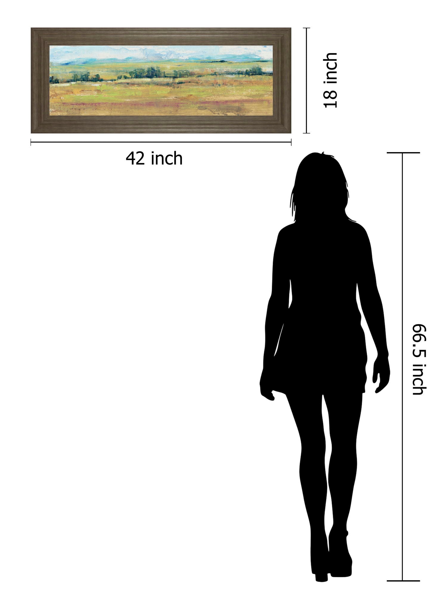 Step into a tranquil vista with this serene abstract landscape that captures the essence of distant horizons through soft, layered brushstrokes and a harmonious blend of blues, greens, browns, and purples. The tranquil ash frame enhances the artwork's calming presence, making it an elegant focal point for living rooms or offices seeking a touch of sophistication. Crafted with premium materials and protected by crystal-clear glass, this piece arrives ready to hang, inviting a peaceful and artistic ambiance into your everyday surroundings.