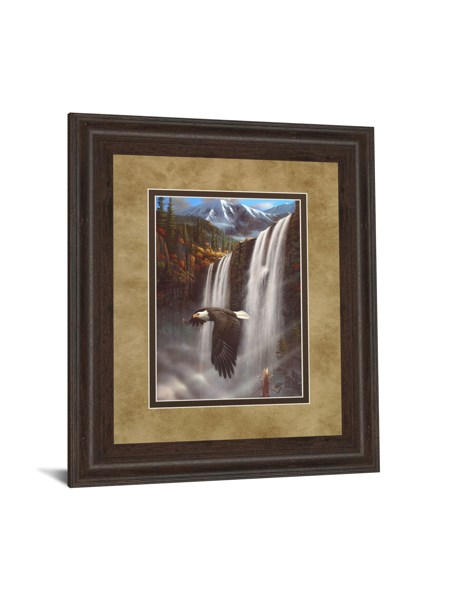 Experience the awe-inspiring beauty of nature with this stunning portrayal of a bald eagle in mid-flight against a dramatic backdrop of cascading waterfalls and towering snow-capped mountains. The rich cinnamon mocha frame and double matting in warm beige tones enhance the depth and warmth of the scene, making it a captivating centerpiece for any living room or office. Crafted with premium real glass and ready to hang, this traditional-style framed wall art invites you to bring the wild majesty and serene power of the great outdoors into your home, evoking a timeless sense of freedom and natural grandeur.