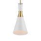 Modern Lines & Shapes In A White & Antique Brass Finish With A Retro Feel Give Us A Classic Looking Mid-century Cone Pendant. 1-60 Watt Max Edison Socket. Bulb Not Included. Supplied With 15' Wire, 3-12" Stems And 1-6" Stem For Adjustable Installation.