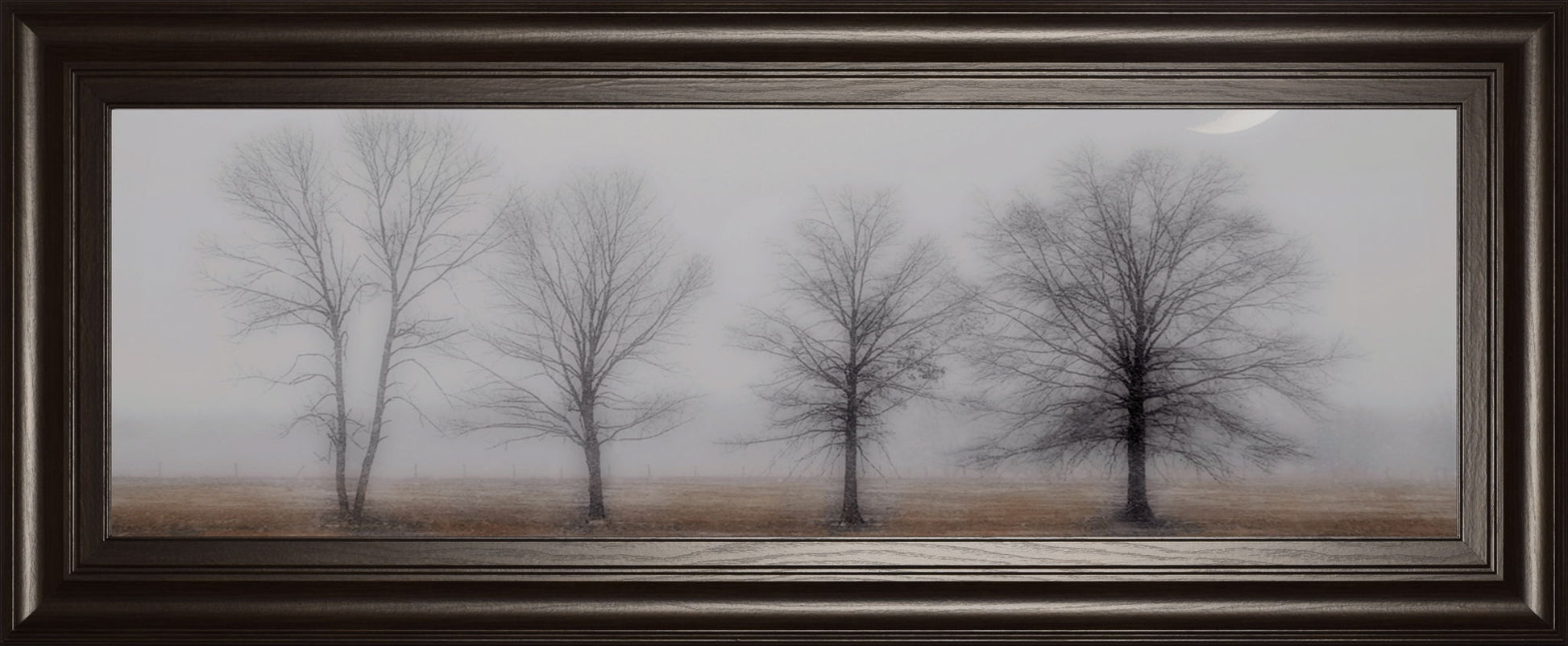 Early December invites you into a quiet moment where the bare silhouettes of trees stand against a gentle, misty horizon. This framed photographic print captures the serene stillness of late autumn, evoking feelings of calm and introspection. The soft blend of brown, gray, and beige tones harmonizes with the warm brown frame, making it a perfect addition to any living room, bedroom, or office seeking a touch of understated natural beauty and timeless farmhouse charm.