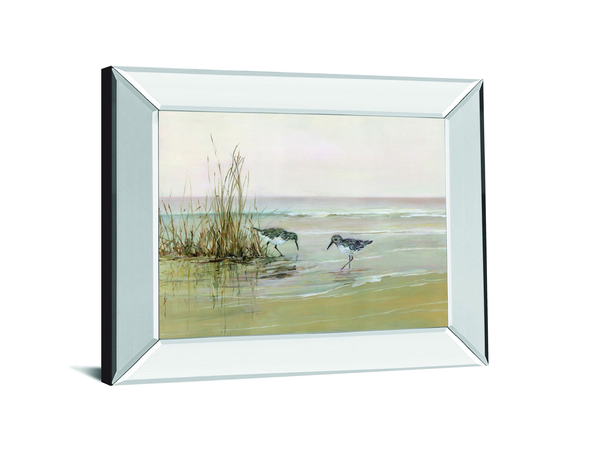 Experience the calm of dawn with this serene coastal scene featuring shorebirds gently foraging along the water's edge. The soft palette of muted sand, sea, and sky tones creates a peaceful atmosphere that invites quiet reflection. Encased in a sleek mirrored frame, this artwork not only brightens your space but also adds a modern touch of elegance and depth. Crafted with premium real glass to protect and enhance the vibrant details, it’s an ideal accent for living rooms, bedrooms, or offices seeking a tranquil nature-inspired vibe. Ready to hang and thoughtfully made in the USA, this piece blends effortlessly into both contemporary and classic décor styles.