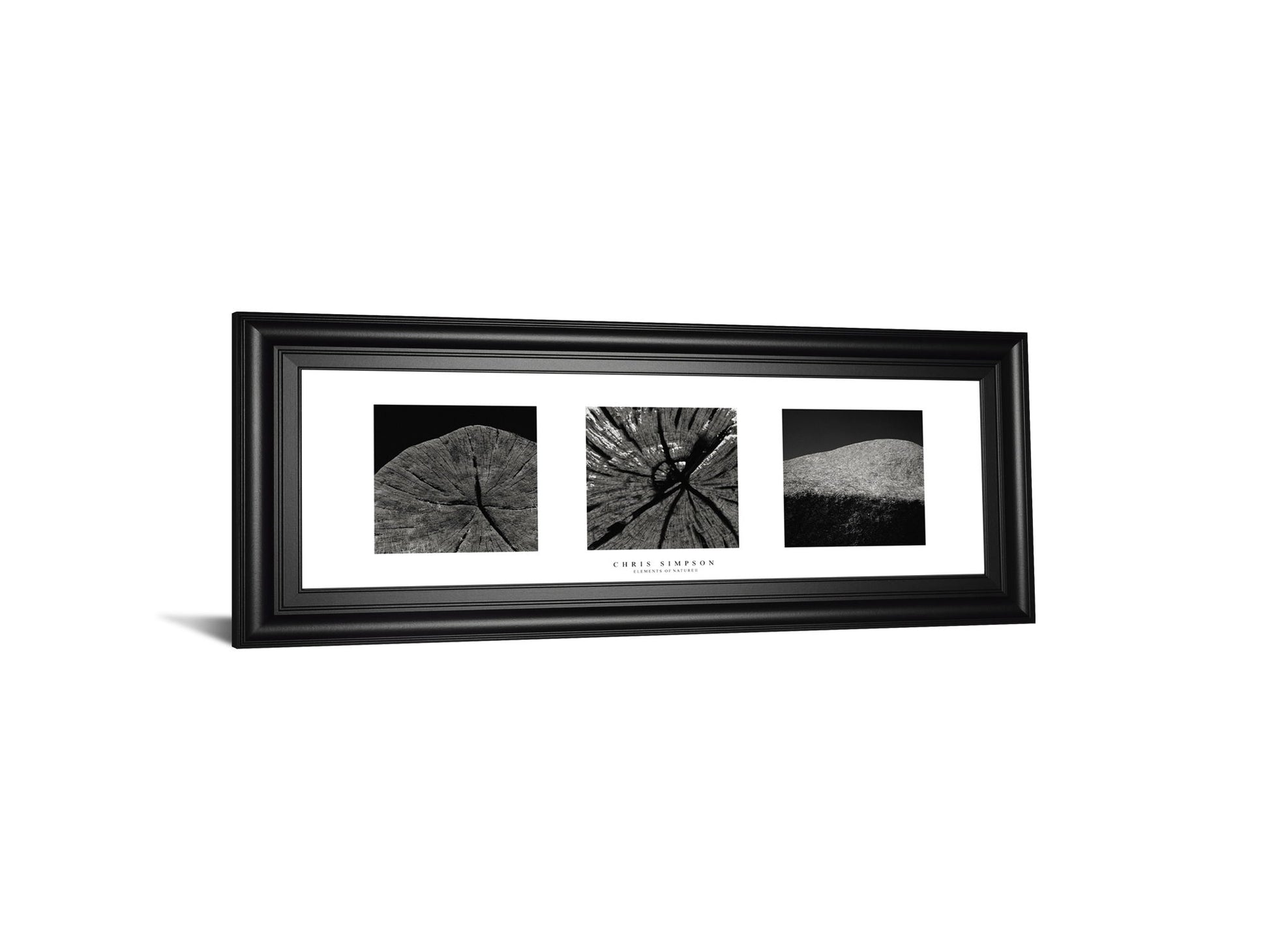 This captivating triptych invites you to explore the subtle beauty found in nature's simplest elements. Featuring three close-up black and white photographs of weathered wood and stone, each image reveals intricate textures and patterns that tell a story of time and resilience. Encased in a sleek black frame with a crisp white mat, this piece adds a serene and sophisticated touch to any living room, office, or bedroom. Crafted with premium materials and clear glass, it is ready to hang and designed to inspire a daily appreciation for the quiet wonders of the natural world.