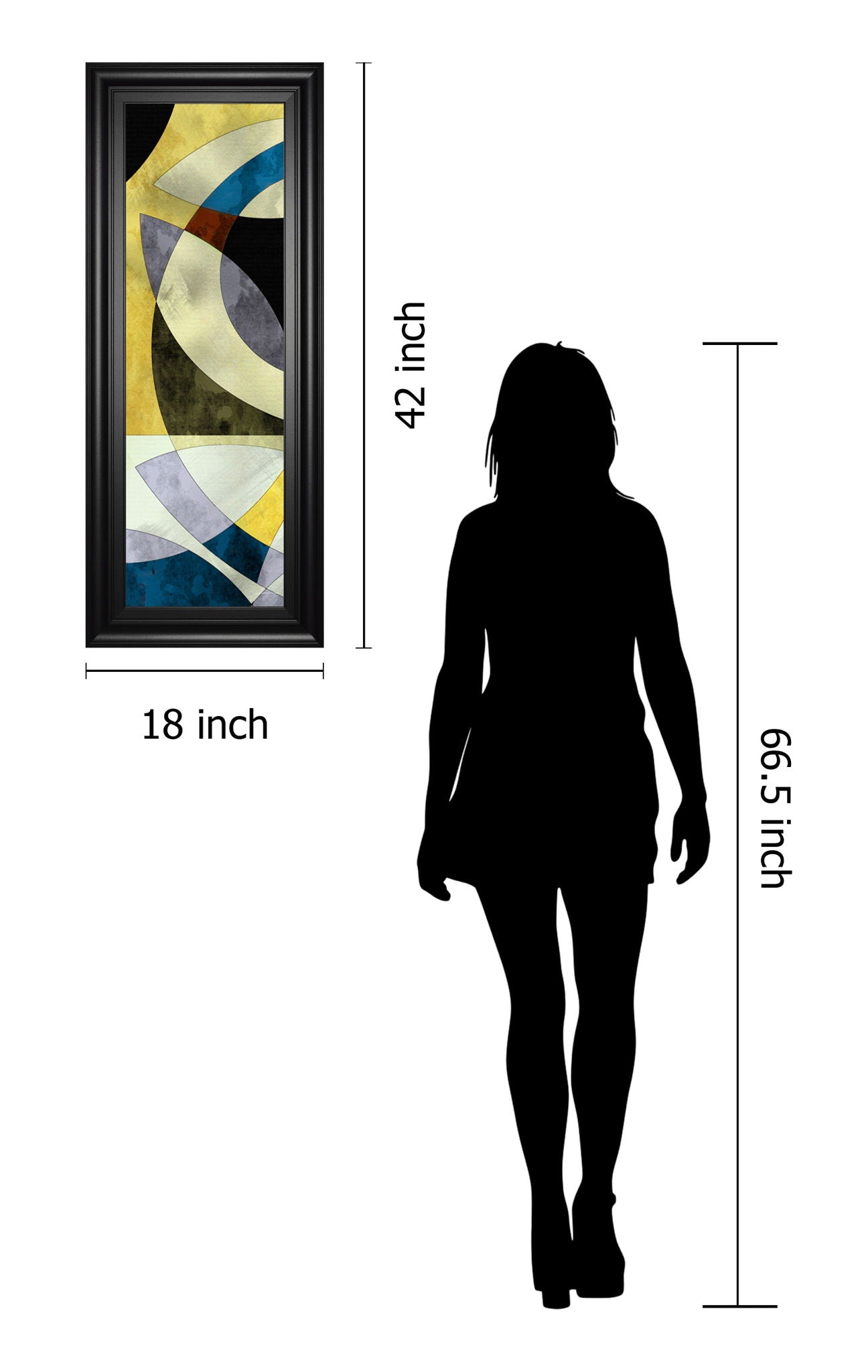 Step into a world of modern elegance with this captivating abstract wall art. Featuring a sophisticated blend of blue, yellow, gray, and subtle earth tones, the piece is framed in sleek black MDF with premium real glass that enhances its vibrant colors. Measuring 18 by 42 inches, this vertical artwork brings depth and style to any living room, office, or bedroom, while its ready-to-hang design ensures effortless installation. Crafted with care in the USA, it’s a timeless addition that transforms your space with contemporary charm and artistic flair.