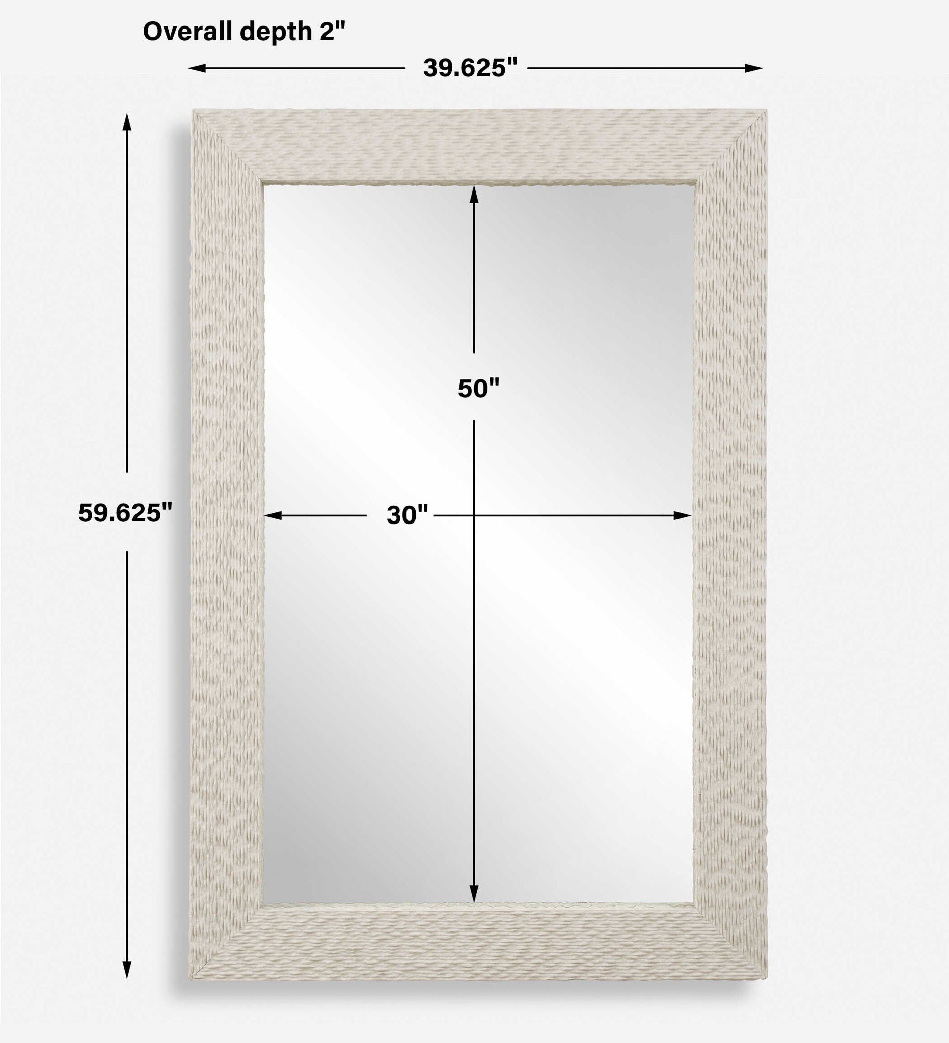 The Everett Mirror Features A Man-made Stone Veneer, Characterized By A Heavily Textured Surface, Finished In A Rich Aged Ivory. Mirror Has A Generous 1 1/4" Bevel. May Be Hung Horizontal Or Vertical.