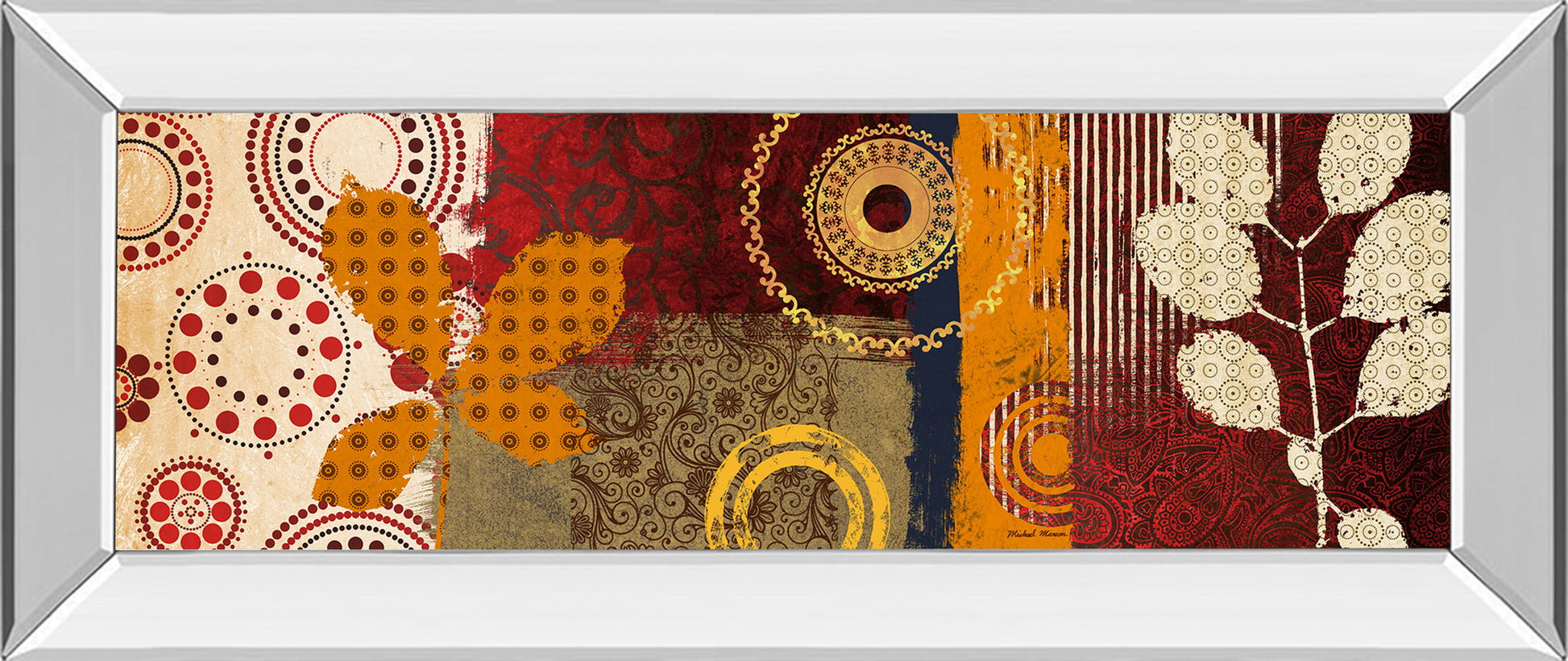 Step into the essence of autumn with this captivating mixed media wall art that effortlessly blends warmth and sophistication. Featuring abstract leaf motifs and intricate circular patterns in rich reds, burnt orange, gold, and cream tones, this piece invites the cozy spirit of fall into your space. Encased in a sleek mirrored frame, it reflects light beautifully, adding a touch of modern elegance to living rooms, offices, or hallways. Crafted with premium materials and protected by real glass, this artwork is a timeless statement that enhances your décor with seasonal charm and artistic depth.