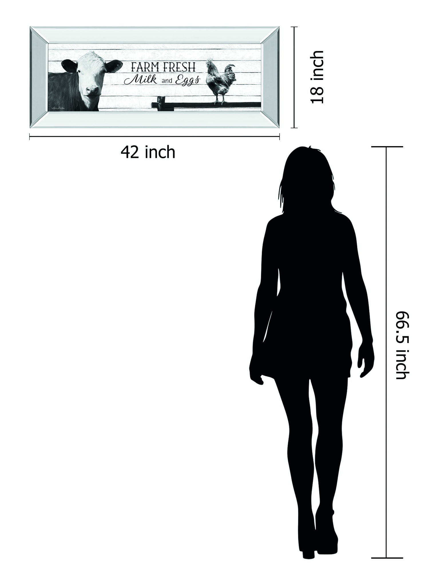 Step into the serene charm of country living with this captivating wall art, featuring a striking black and white photograph of a cow and a rooster against a whitewashed wooden plank backdrop. The piece beautifully balances rustic warmth with modern elegance, framed in a sleek 2.5-inch mirrored frame that adds depth and a subtle reflective glow. Crafted with premium real glass to protect the vibrant details, this 18 by 42-inch artwork is a perfect addition to kitchens, dining rooms, or living spaces seeking a blend of timeless farmhouse style and contemporary sophistication. Ready to hang and thoughtfully made in the USA, it invites a cozy, welcoming spirit into your home.