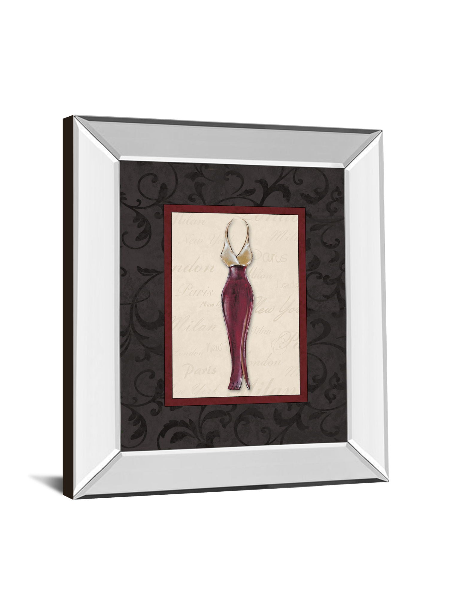 Step into a world of refined style with this Elegant Dress II framed wall art. The sleek mirrored frame enhances the sophisticated burgundy and beige dress illustration, set against a subtle background featuring the names of iconic fashion capitals. This piece is protected by premium real glass, ensuring vibrant colors and crisp details that bring a modern yet timeless fashion statement to any living room, bedroom, or office. Expertly crafted and ready to hang, it adds a touch of luxury and contemporary charm to your décor.