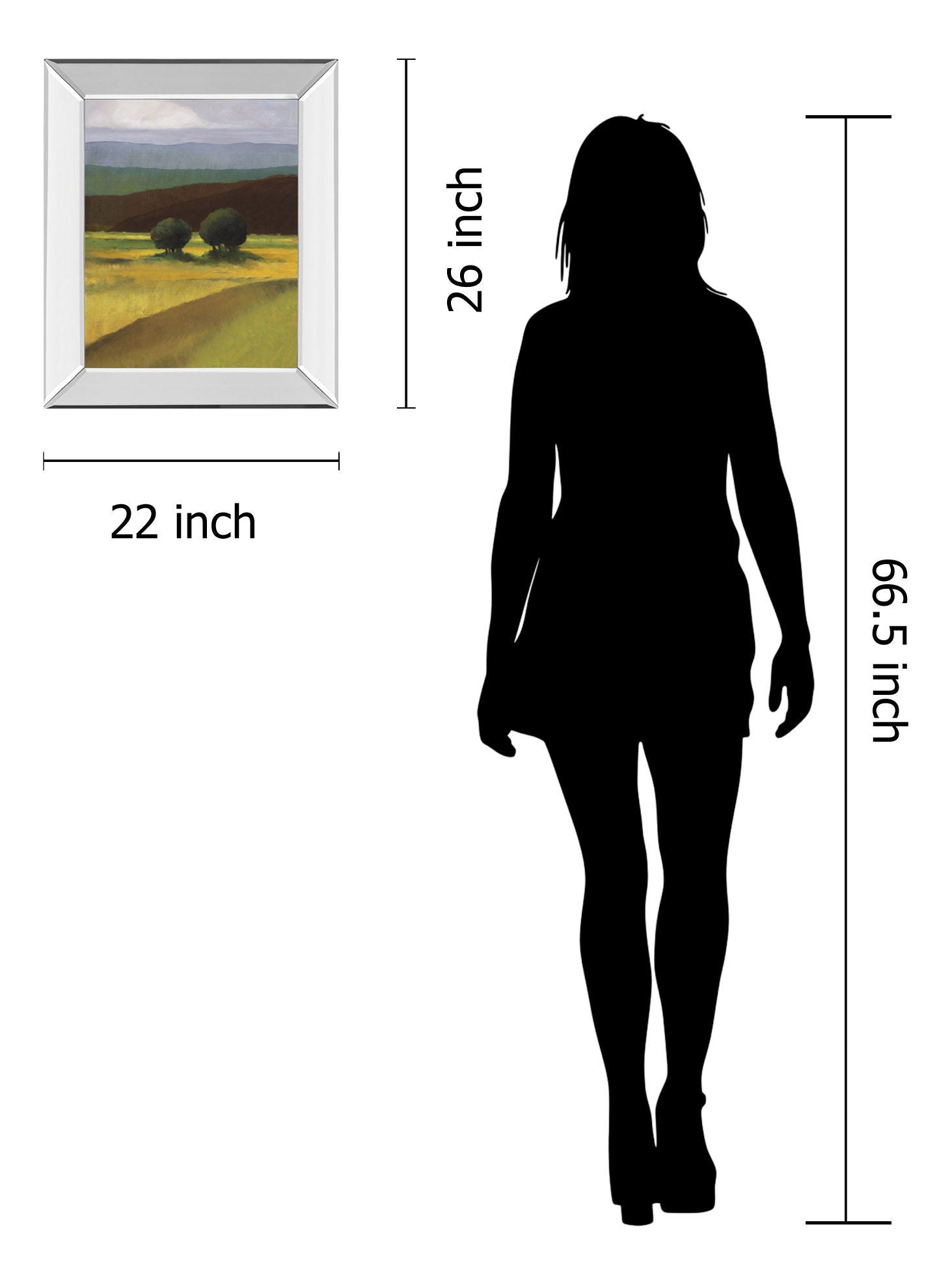 Step into a tranquil landscape where rolling hills meet softly glowing fields in this beautifully framed wall art. The mirrored frame adds a modern touch, reflecting light and enhancing the peaceful ambiance of any living room or office. Crafted with premium real glass and high-quality graphic art on paper, this piece captures vibrant colors and intricate details, inviting calm and sophistication into your space.