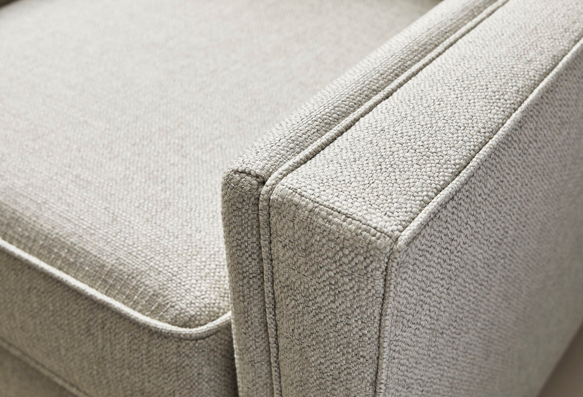 Simplicity and elegance combine in a sophisticated silhouette with the Finley chair. Featuring a distinctive profile with sloped, tapered track arms and attractive welt detailing, this stationary design is an elegant statement for any home. The semi-attached back and removable, reversible seat cushion make it easy to clean and maintain your chair. This stately frame sits on sleek, square-tapered legs and is available in hundreds of fabric options to suit your style.