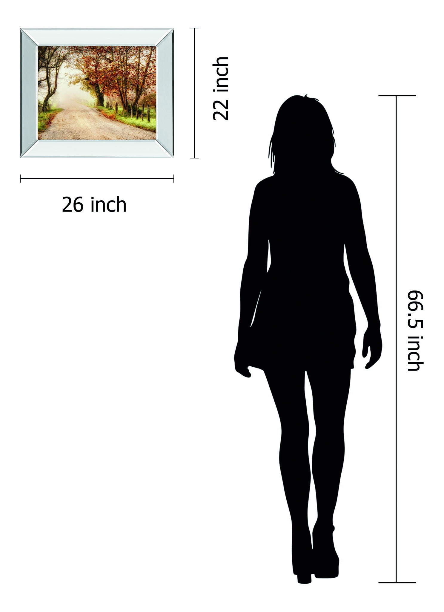 Discover the quiet charm of a misty country road in this beautifully framed photographic print. The scene captures autumn trees shedding their leaves alongside a winding rural path, enveloped in soft fog that invites a moment of peaceful reflection. Enhanced by a sleek mirrored frame, this piece adds a modern touch to a traditional landscape, preserving vibrant colors and fine details under premium real glass. Perfect for living rooms, offices, or studies, it brings warmth and tranquility to any space, inviting you to pause and appreciate nature’s gentle embrace.