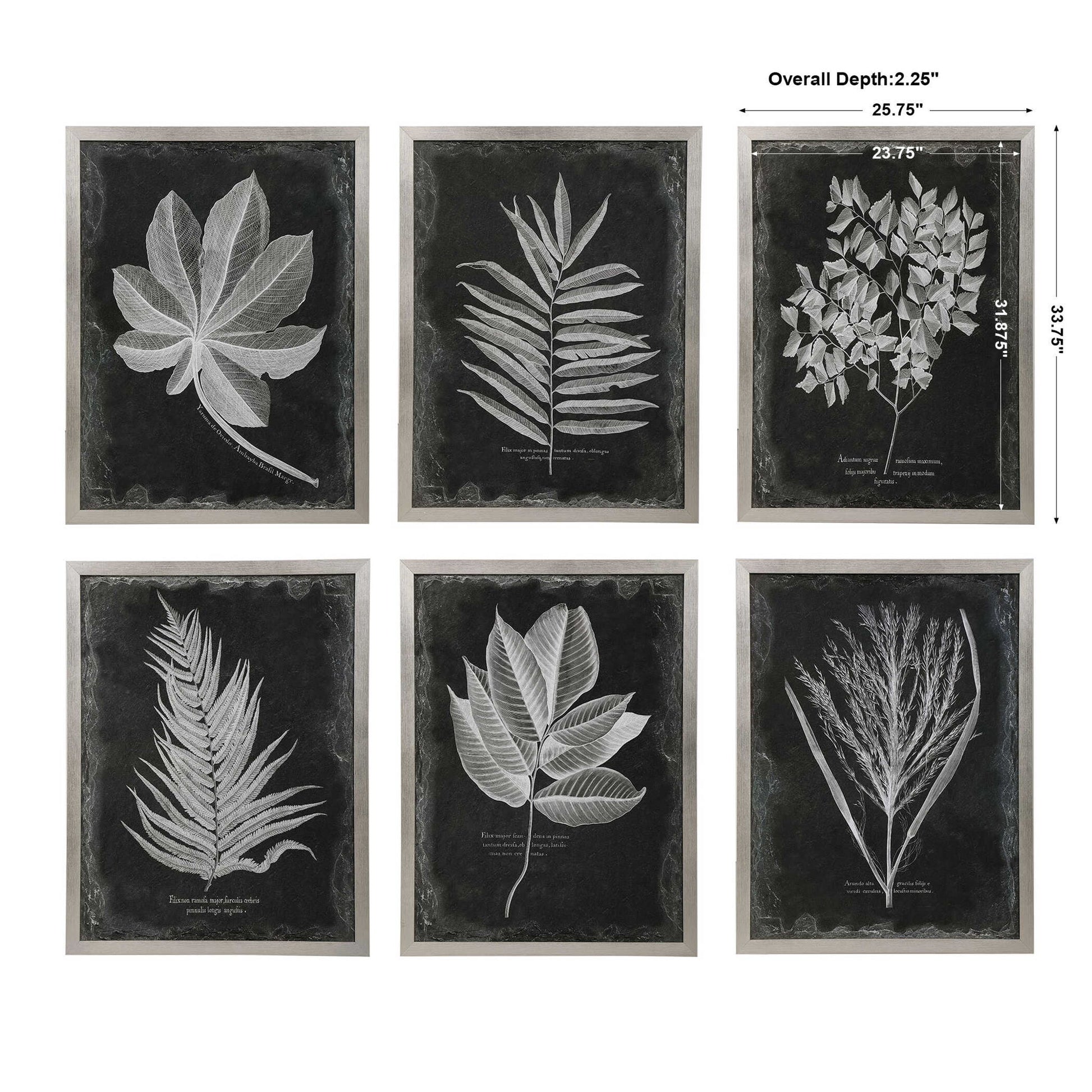 This Botanical Artwork Showcases Vintage Style With A Contemporary Edge. Each Striking Black And White Contrast Is Accented With A Petite, Champagne Silver Frame. Each Print Is Placed Under Protective Glass.