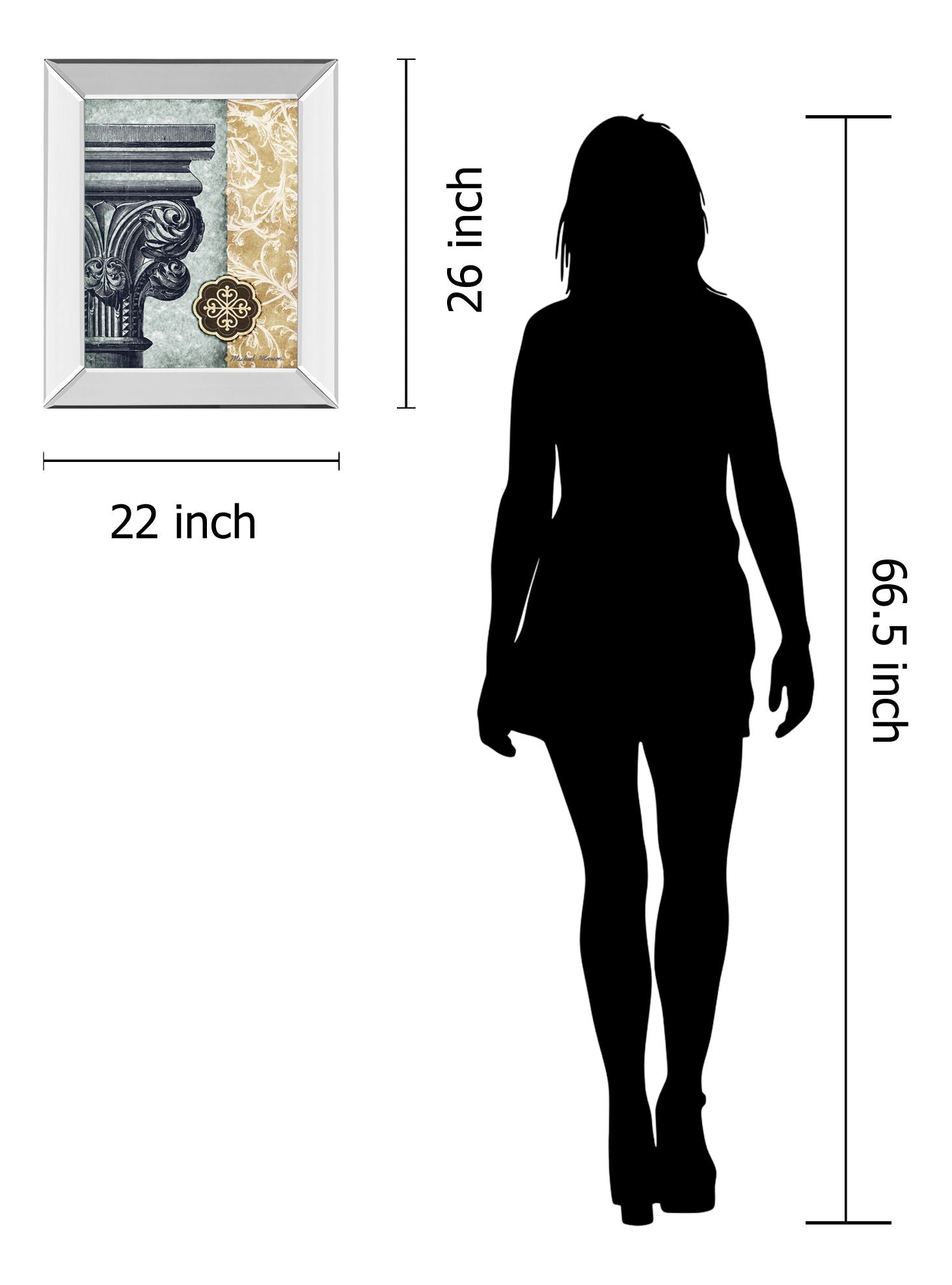 Step into a world where architectural grandeur meets refined artistry with this Romanesque Elegance framed wall art. The intricate detailing of the Romanesque column, paired with delicate scrollwork in warm gold and neutral tones, creates a timeless visual story that complements contemporary interiors. Encased in a sleek mirrored frame, this piece not only adds depth and light but also elevates any living room, office, or study with its subtle luxury. Crafted with premium real glass to protect the finely rendered graphic art, it arrives professionally assembled and ready to become a captivating focal point in your space.