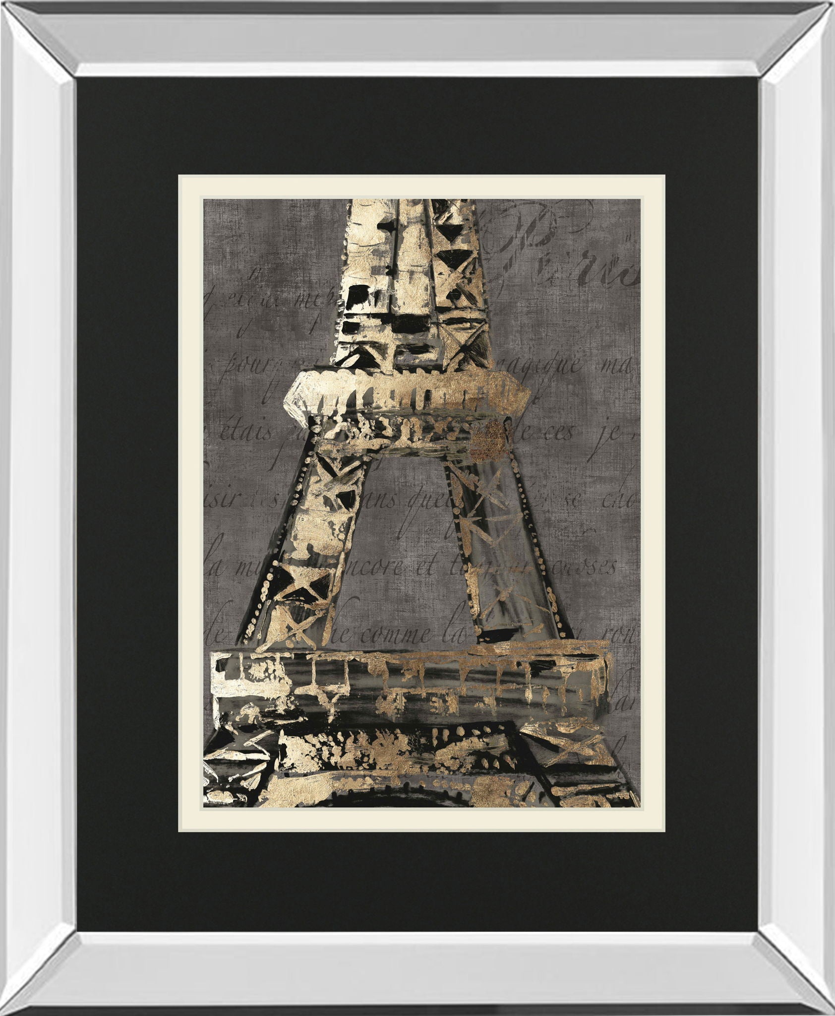 Step into a world where urban sophistication meets timeless architecture with this stunning framed wall art. Featuring a bold, metallic interpretation of an iconic tower, the piece is set against a textured gray backdrop with subtle script accents that evoke a sense of history and romance. The mirrored frame adds a contemporary edge, reflecting light and space to create an inviting atmosphere in any living room, bedroom, or office. Double-matted in black and cream, this artwork is protected by premium real glass, ensuring durability and clarity. Ready to hang and professionally assembled, it effortlessly blends modern glamour with classic inspiration to elevate your décor.
