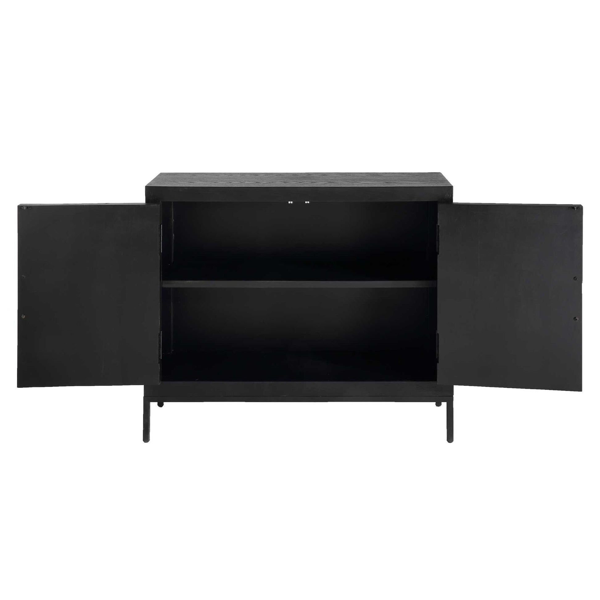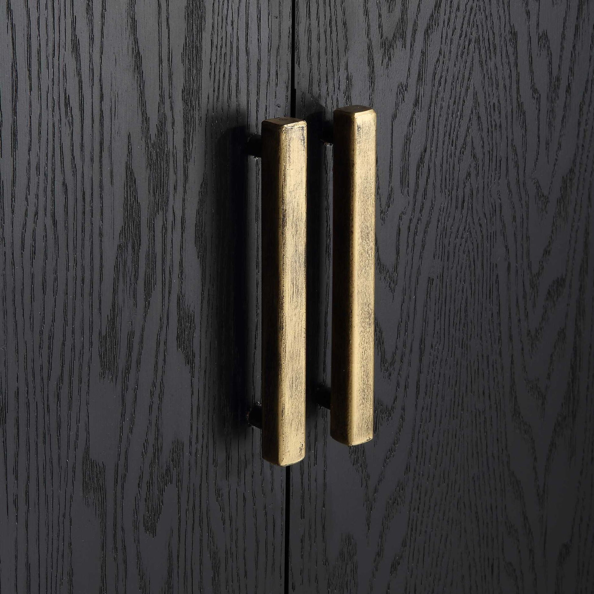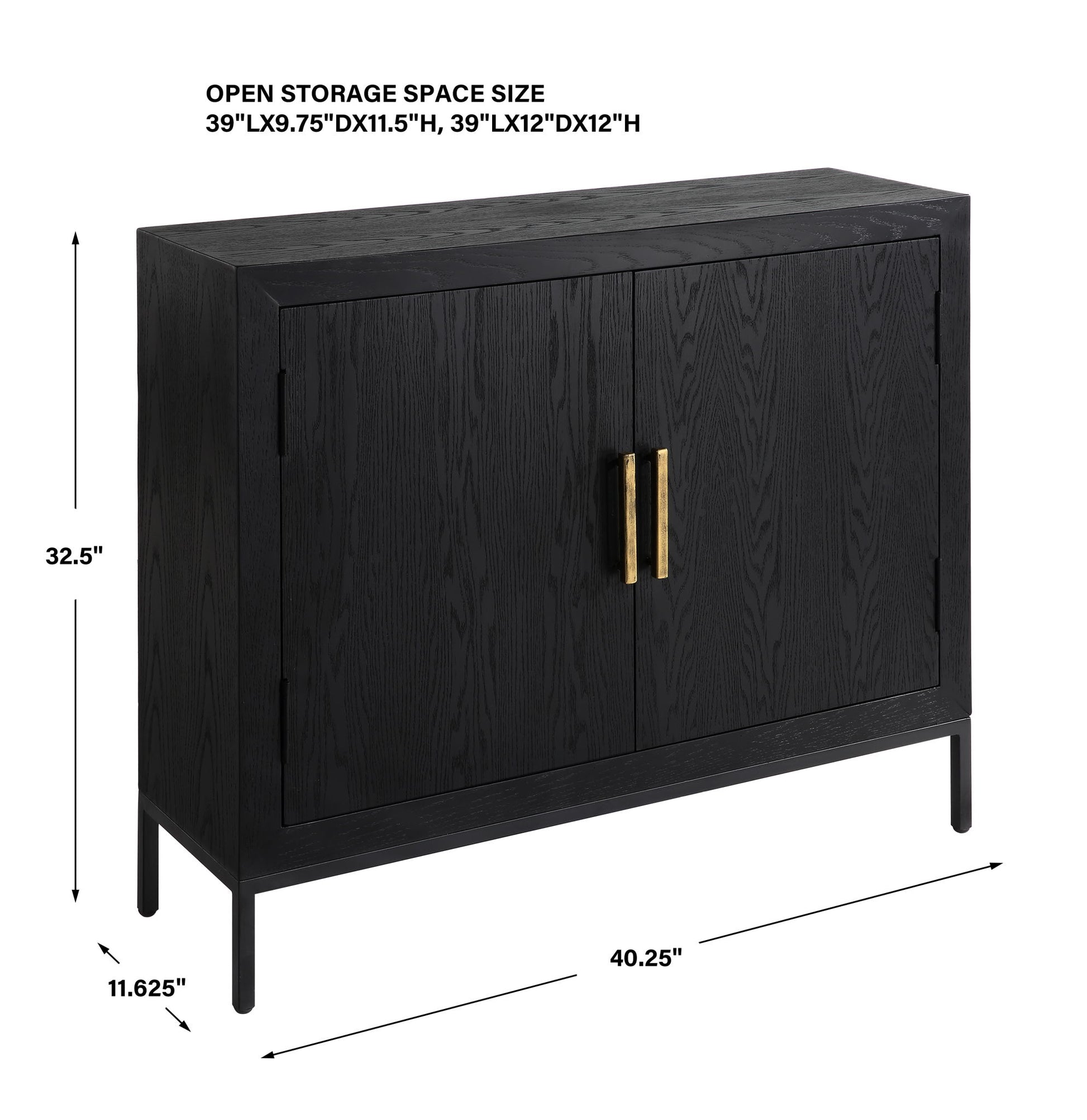 The Front Range Cabinet's Streamlined Design And Classic Finishes Make It A Perfect Addition To Virtually Any Space. The Cabinet Is Finished In A Dark Ebony Oak Veneer, Accented By Linear Iron Pulls In Aged Gold. Has One Interior Fixed Shelf.