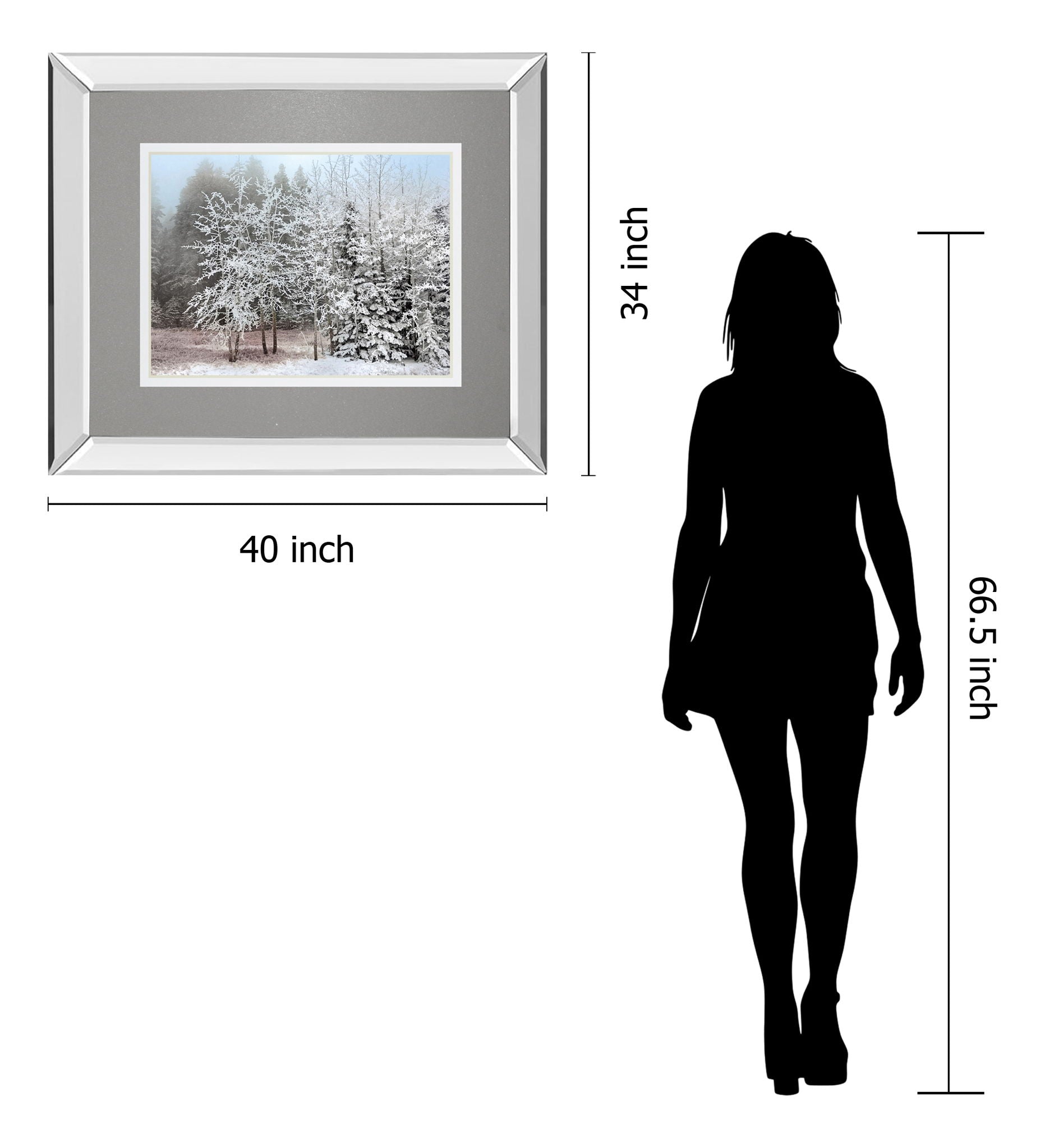 Step into a tranquil winter scene with this captivating framed wall art that captures the delicate beauty of a frosty morning. The photograph showcases snow-laden trees standing quietly against a misty backdrop, evoking a sense of calm and peaceful solitude. Encased in a sleek mirrored frame with double matting, this piece reflects light and depth, enhancing the serene atmosphere it brings to any living room or office. Crafted with premium real glass, it preserves the crisp details and subtle shades of gray, white, and silver, making it a timeless addition to your décor that invites quiet reflection and modern elegance.