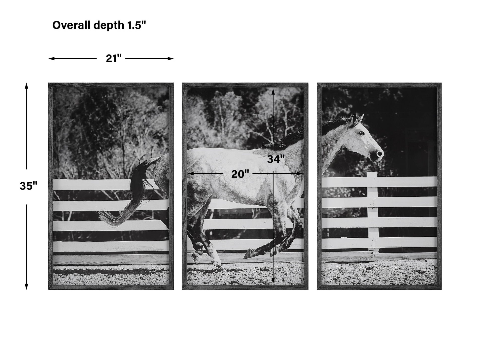 The Perfect Triptych For Equine Lovers, These Exclusive Prints Are Encased In Glass And Surrounded By Wooden Frames In A Black Finish With Ivory Ceruse Detailing.