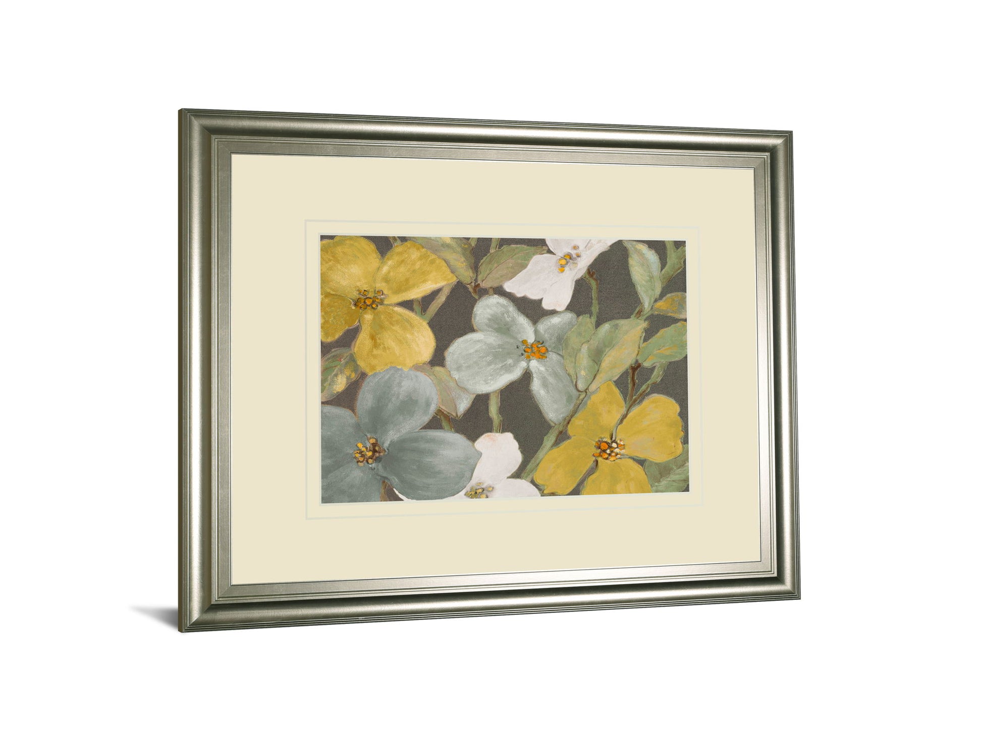 Step into a tranquil garden with this captivating botanical wall art that blends muted grays, soft yellows, and gentle greens in a harmonious dance of color. The delicate floral forms, rendered in a contemporary mixed media style, invite a peaceful ambiance into any room. Framed in an elegant silver frame with a cream double mat, this piece offers a refined gallery finish, making it a perfect addition to living rooms, bedrooms, or offices seeking a touch of nature’s quiet beauty. Crafted with premium materials and real glass, it arrives ready to hang and transform your space with subtle sophistication.
