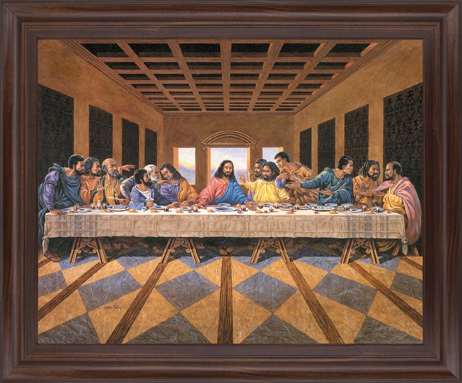 Experience a powerful reinterpretation of a timeless scene with this framed wall art depicting the Last Supper through an African American lens. The artwork's warm, rich hues and intricate detailing are beautifully complemented by a cinnamon mocha frame that adds a refined touch to any room. Crafted with premium materials and protected by clear glass, this piece is ready to hang and brings a sense of tradition, culture, and reverence to dining rooms, living rooms, or studies.