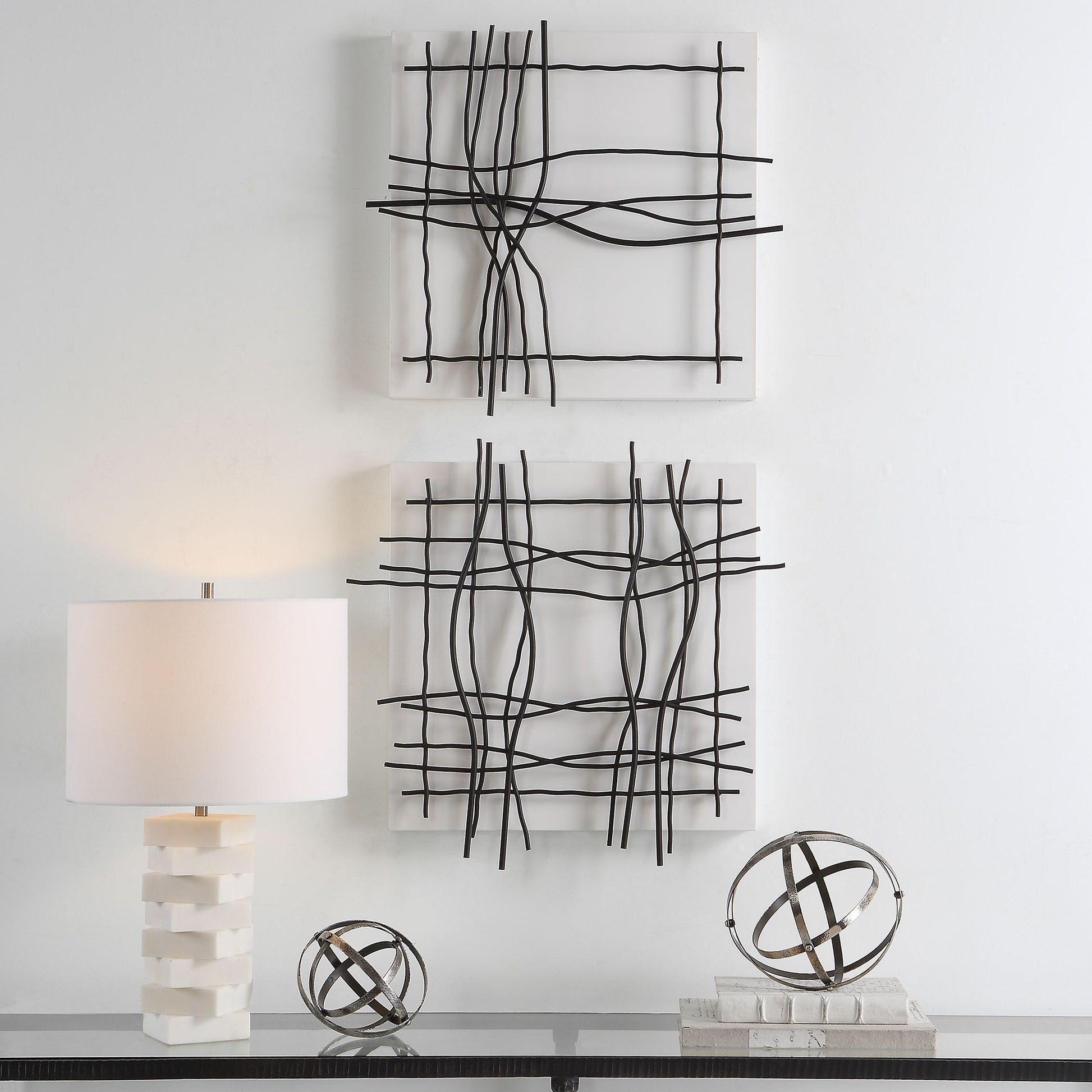 This Set Of Abstract Iron Wall Panels Creates A Striking Black And White Installation. May Be Hung Five Ways For A Truly Unique Display.