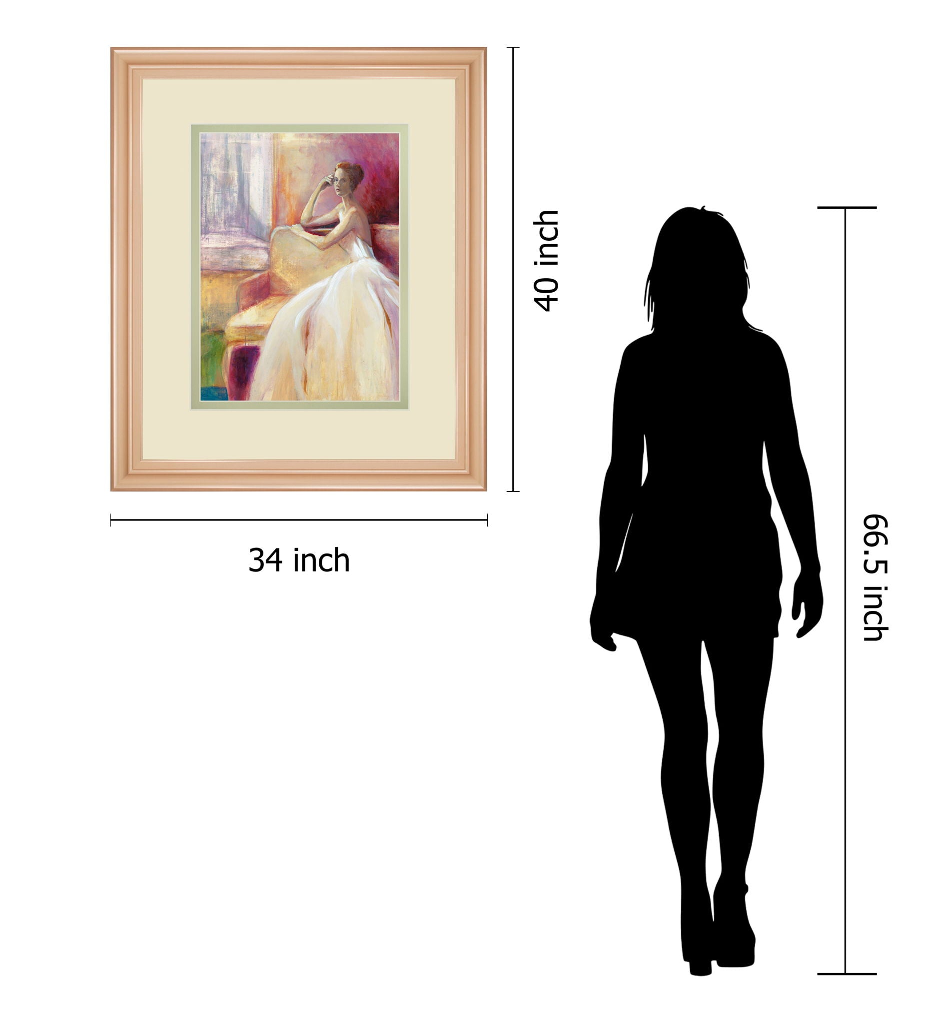 Step into a moment of serene contemplation with this captivating artwork featuring a graceful figure poised in quiet reflection. The soft, warm palette of cream, rose gold, and subtle purples blends seamlessly with delicate brushstrokes, evoking a sense of calm and timeless elegance. Framed in a wide rose gold romance frame with double matting, this piece offers a polished gallery-style finish that enhances its depth and beauty. Crafted with premium real glass to preserve vibrant colors and fine details, it is ready to hang and perfect for adding a sophisticated, tranquil ambiance to living rooms or bedrooms.
