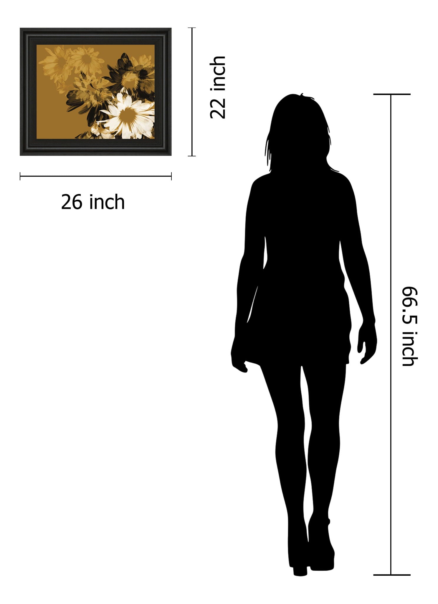 Golden Bloom II enchants with its layered botanical imagery, where soft floral silhouettes emerge against a rich golden background. This contemporary piece is framed in a deep midnight aura finish, adding a striking contrast that enhances the artwork's depth and sophistication. Crafted with premium real glass and a wide 3-inch frame, it offers both protection and a polished presentation, making it a timeless focal point for living rooms, bedrooms, or offices. Ready to hang and proudly made in the USA, this elegant wall art effortlessly elevates any space with its blend of modern design and natural beauty.