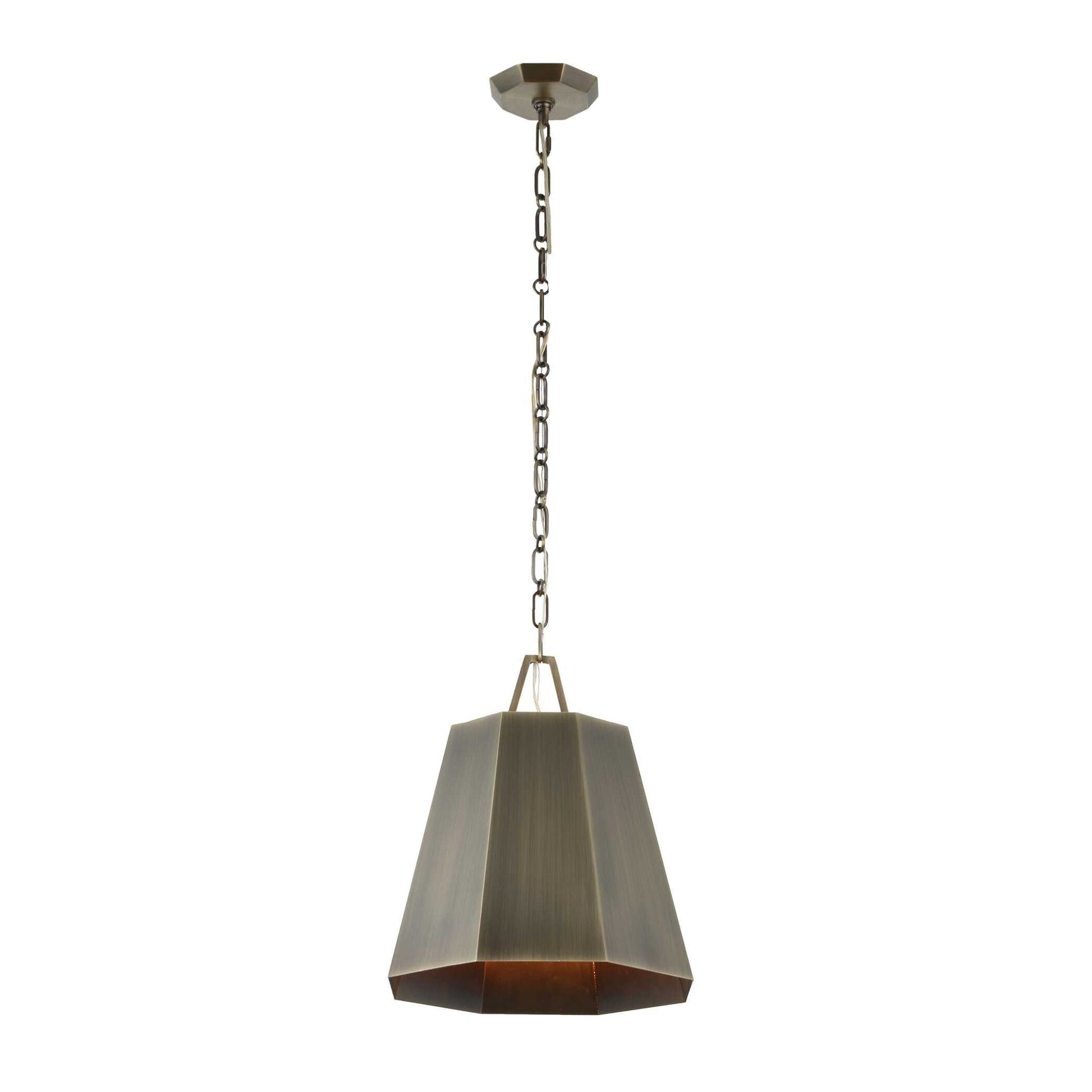 Rich Weathered Brass Gives A Brawny Feel To This Hexagon Shade Pendant. 1-60 Watt Max Edison Socket. Bulb Not Included. Supplied With 15’wire, 7’ Chain For Adjustable Installation.
