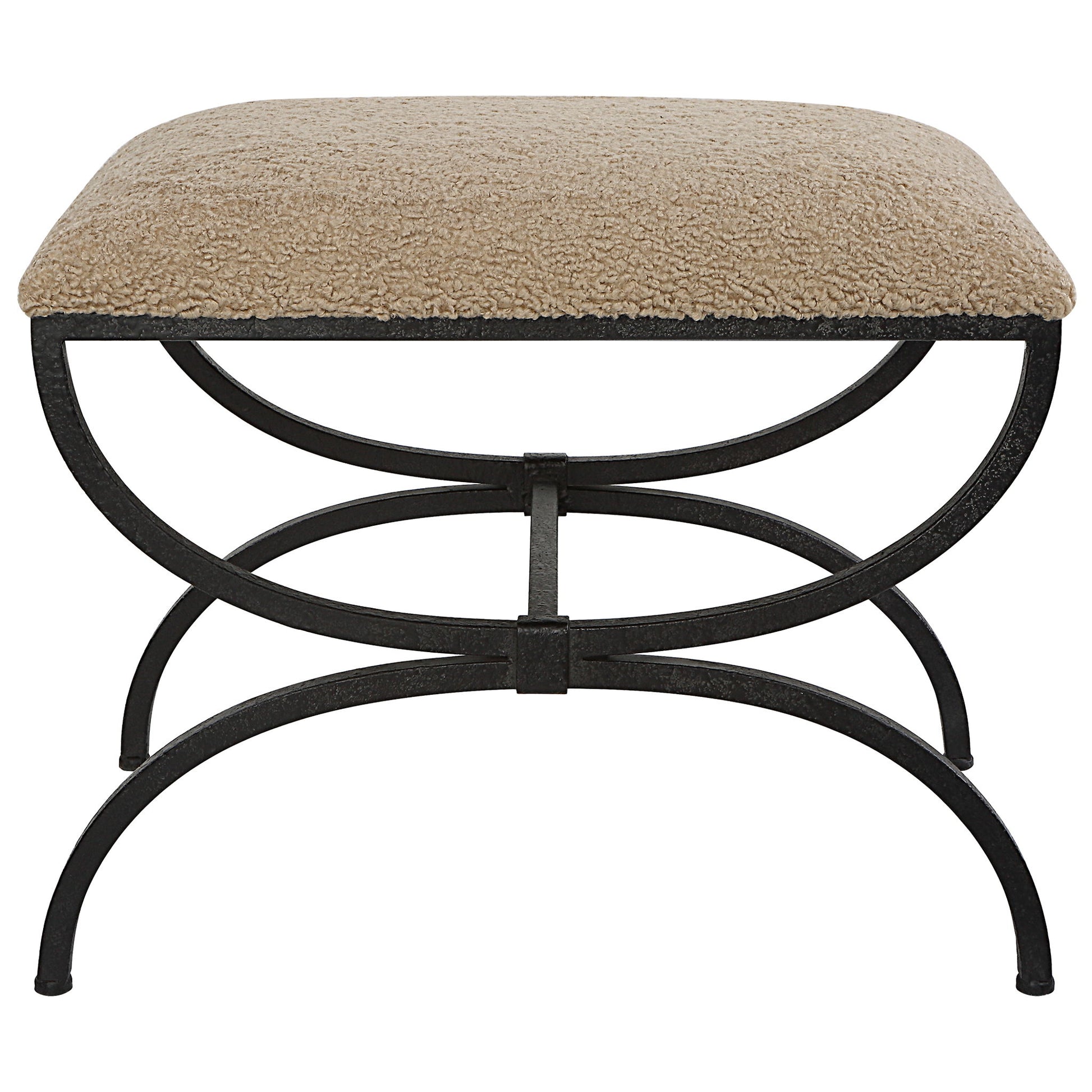 - Influenced By Spanish Architecture, This Small Bench Features A Heavily Textured Iron Base Finished In Aged Black Topped With A Plush Faux Shearling In Latte.