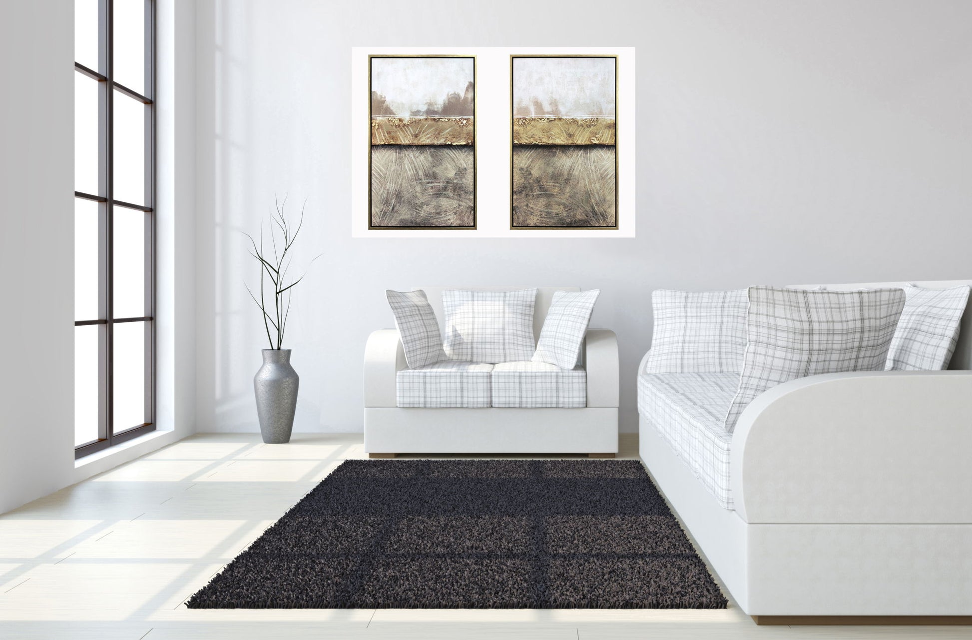 Hand Painted Textured Canvas in Frame 64x47 (Set of 2) - Dark Gray