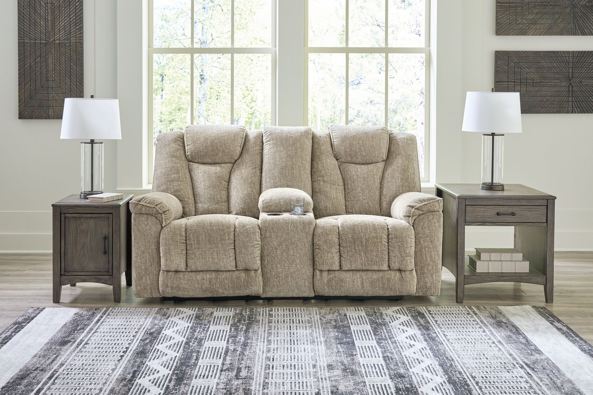 Hindmarsh - Power Reclining Loveseat with Console/ Adj Hdrst - Stone