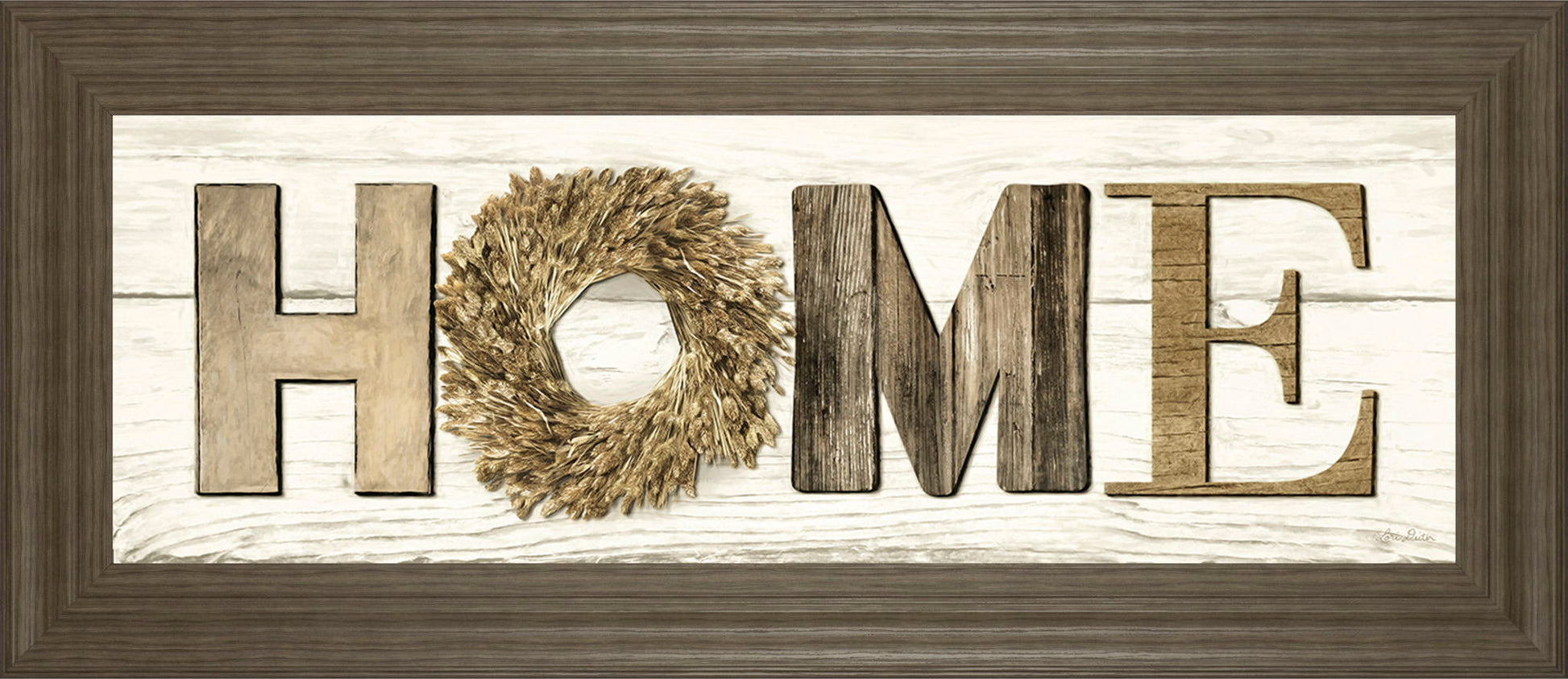 Invite the comforting spirit of home into your space with this charming wall art that beautifully blends rustic textures and natural tones. The design features the word "HOME" with a creative wreath replacing the letter "O," crafted from warm, wood-inspired elements that evoke a sense of coziness and belonging. Encased in a tranquil ash frame, this piece adds depth and sophistication to any living room, entryway, or office. Professionally assembled with premium real glass, it protects the vibrant details while enhancing the artwork's inviting ambiance. Ready to hang and crafted to complement a variety of décor styles, this transitional art piece brings warmth and elegance to your sanctuary.