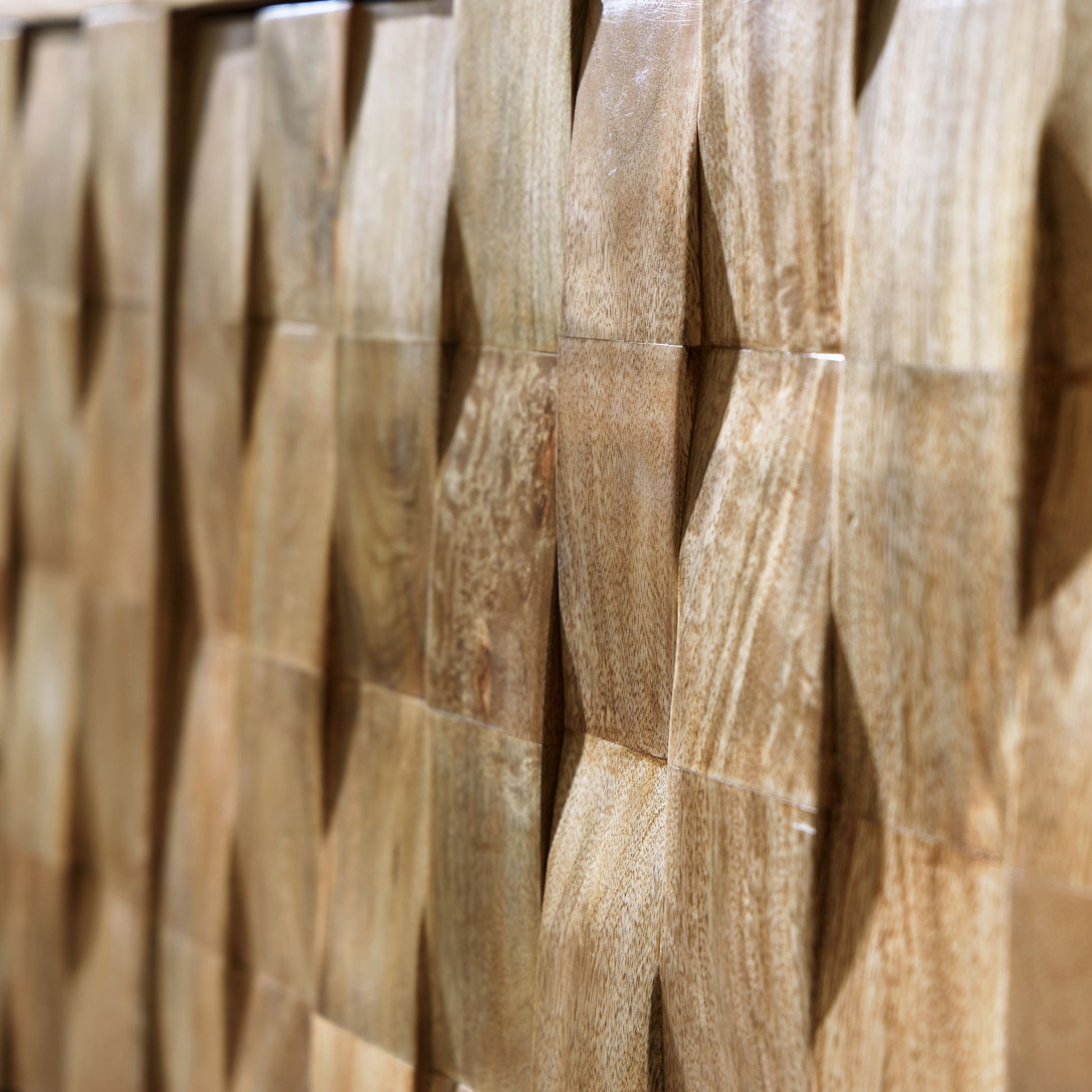How many squares do you see? They’re laid out in casually cool style on this accent cabinet. The block-patterned door fronts and natural brown finish add dimension and a laid-back aesthetic to your storage needs. Look behind the push magnet doors for two adjustable shelves, giving function to form. (We counted 64 squares, by the way.)