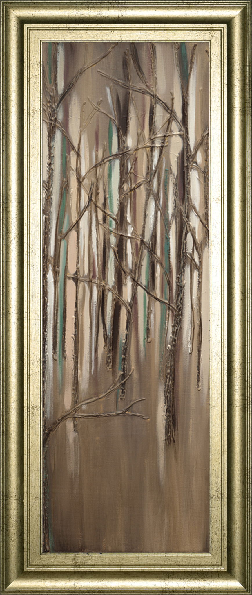 Step into the tranquil embrace of a quiet woodland with this captivating mixed media artwork. Textured vertical lines and a soothing palette of browns, beiges, teals, and creams evoke the gentle stillness of tree trunks and branches, inviting a sense of calm and reflection into your space. Encased in a wide gilded frame that enhances its subtle gold accents, this piece becomes a sophisticated focal point perfect for living rooms, bedrooms, or offices. Crafted with expert care, it blends natural elegance and contemporary artistry to enrich your home with serene beauty and timeless charm.