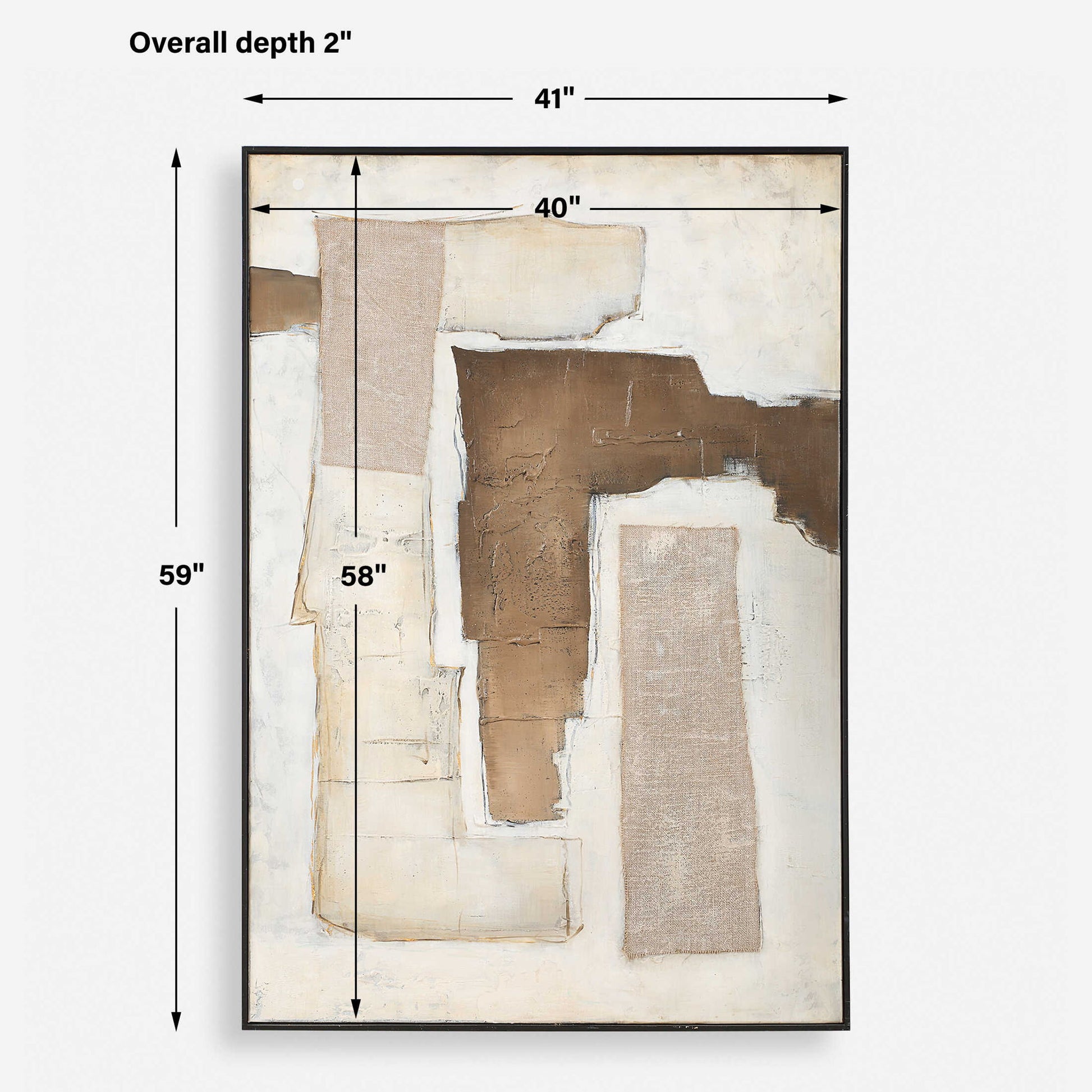 Interference Hand Painted Canvas Is A Striking Abstract Mixed Media Artwork That Blends Warm Shades Of Chocolate Brown And Taupe. A Slim, Black Gallery Frame Completes The Piece. Due To The Handcrafted Nature Of This Artwork, Each Piece May Have Subtle Differences. May Be Hung Horizontal Or Vertical.