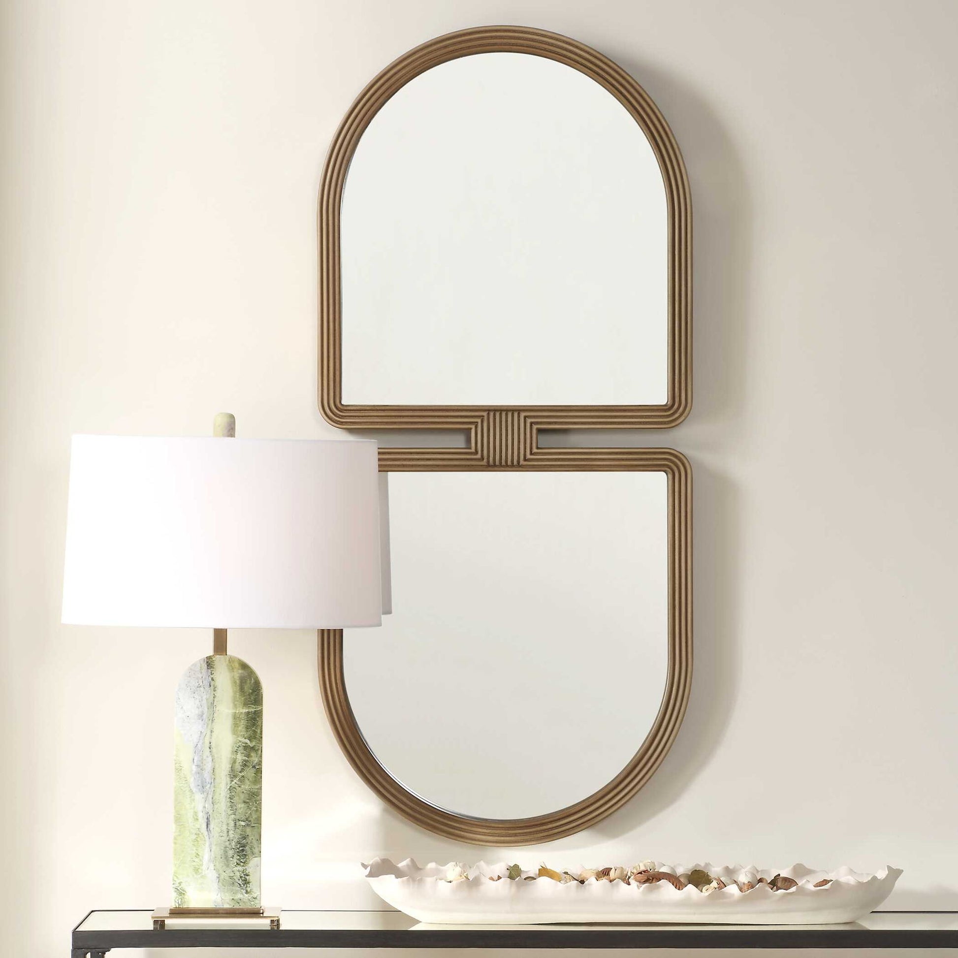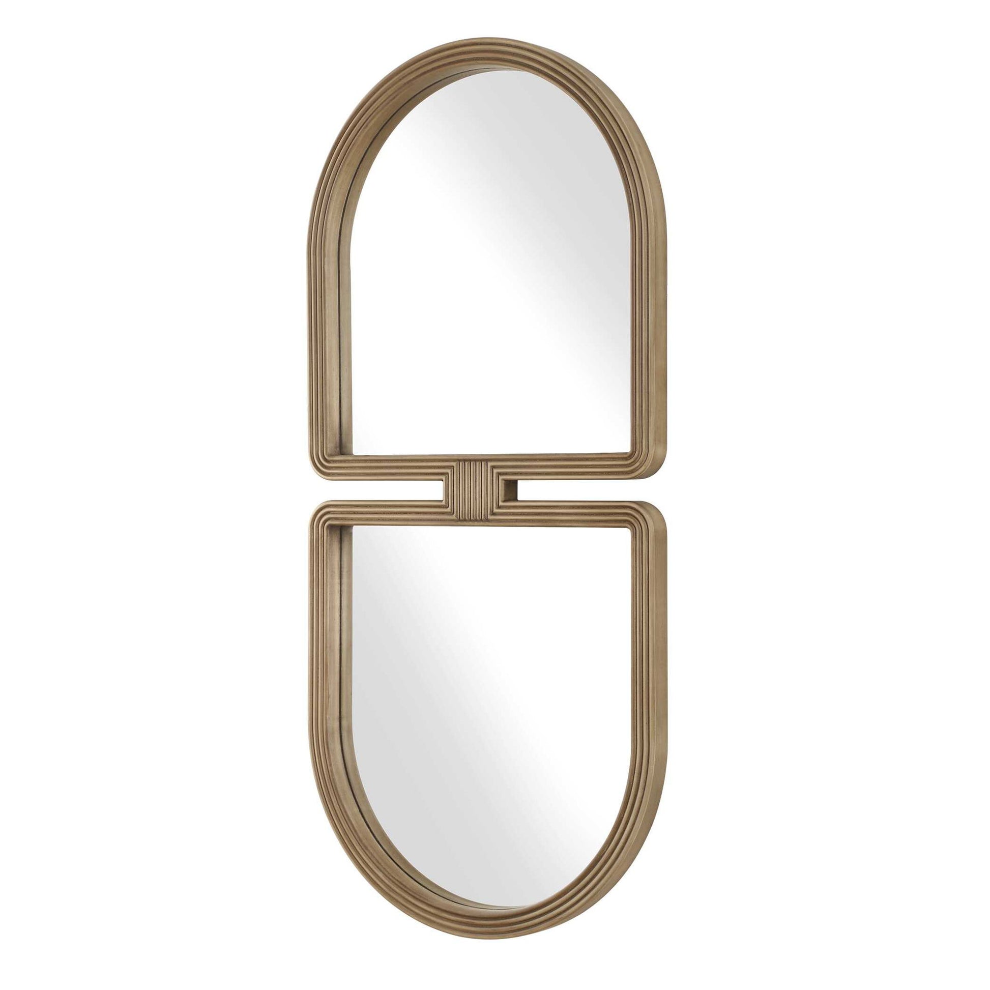 A Modern Twist On Art Deco Design, This Mirror Breaks Away From Traditional Shapes With Its Eye-catching Silhouette. It Features A Sleek, Wooden Frame With Grooved Out Channels Finished In A Light Natural Wood Tone. The Contrasting Forms Create A Visually Dynamic Piece That Complements Both Classic And Contemporary Interiors.
