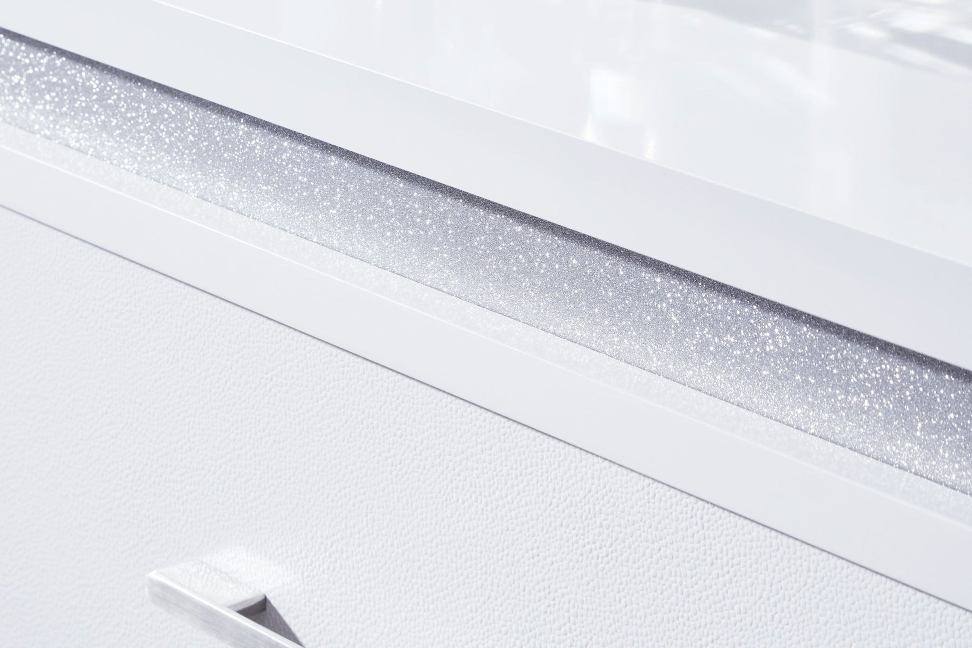 This dresser is a showstopper, bringing a touch of modern glamour to your sanctuary. A sleek white finish and inset glitter accents create a sophisticated feel, while spacious drawers provide practical storage. It’s a simply stunning way to achieve the bedroom of your dreams.