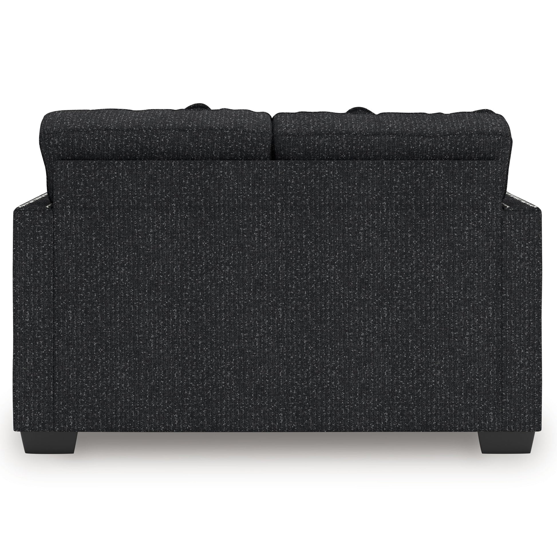 This stunning loveseat leaves a lasting impression. Its cozy cushions, chic coal-colored upholstery and striking nailhead trim are a perfect blend of comfort and contemporary design. And here’s the showstopper—ambient red, white and blue LED lighting along the loveseat's base. The look is simply wow.