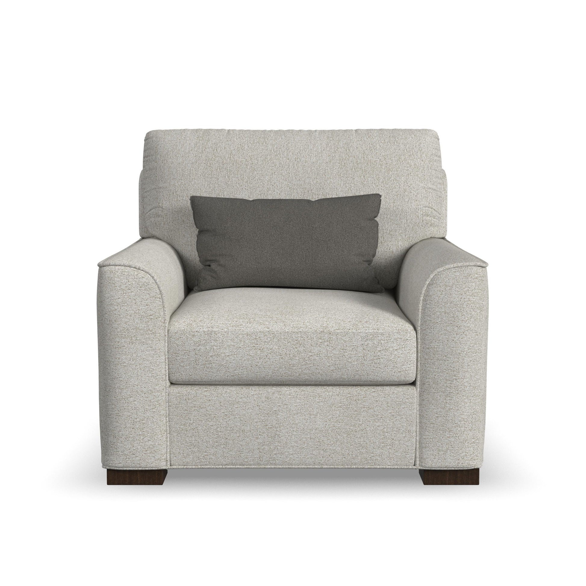 The Jasper chair redefines relaxation with its transitional appeal and superior comfort. This transitional piece highlights a linear profile with subtle, welcoming curves that will enhance any decor. It is elevated by low, block legs and features a welt trim detail for a touch of elegance. At the heart of the seat, Flexsteel's renowned Blue Steel Spring™ system ensures durability and unparalleled comfort, providing lasting support.