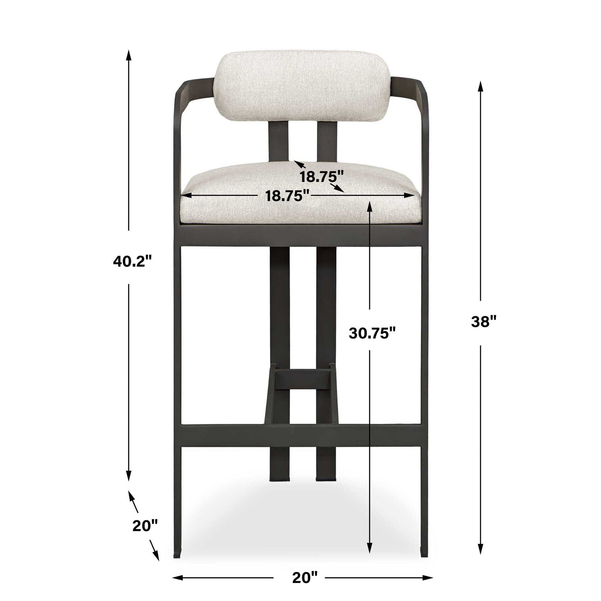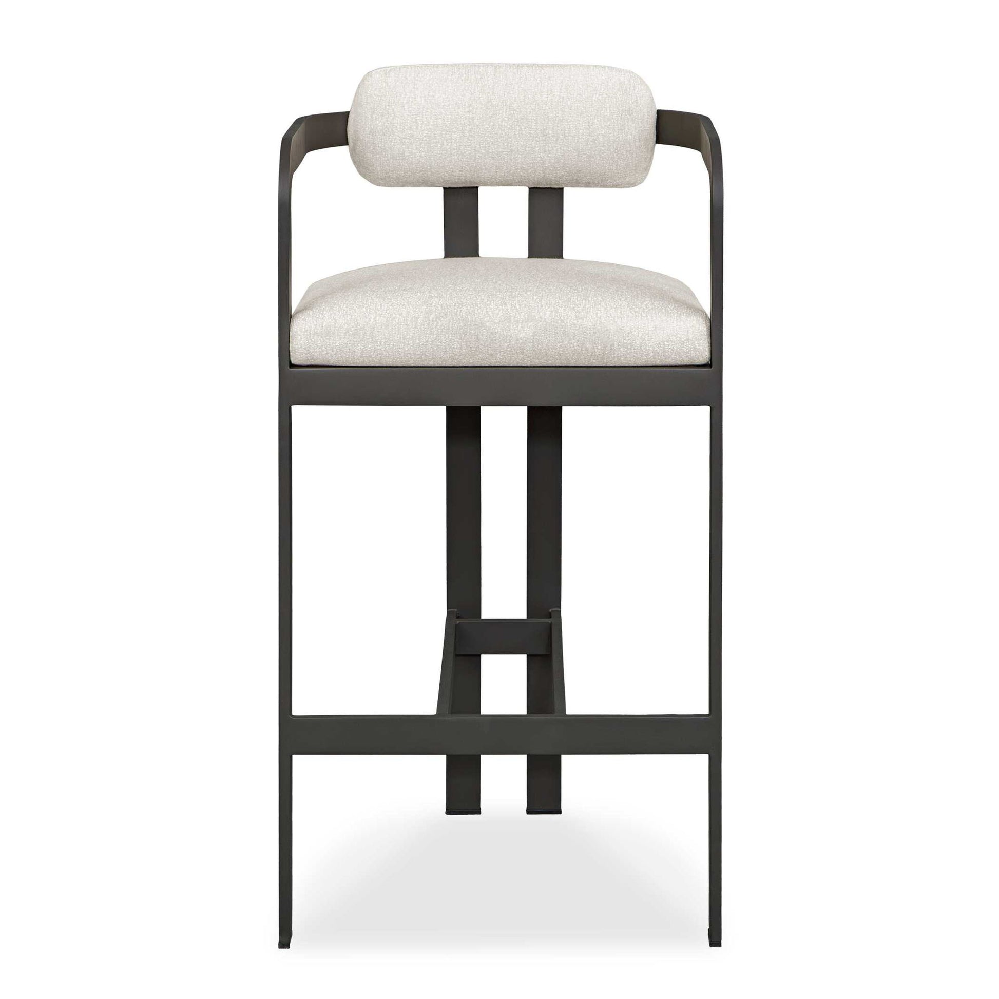 The Kalmar Outdoor Bar Stool Boasts A Sturdy, Powder Coated Steel Frame In A Sleek Finish Offering A Comfortable And Stylish Seating Solution For Outdoor Entertaining. The Seat And Floating Back Are Upholstered In Oyster White Solution Dyed Acrylic Fabric That Is Constructed To Withstand The Moisture And Dirt That Comes With Outdoor Use.