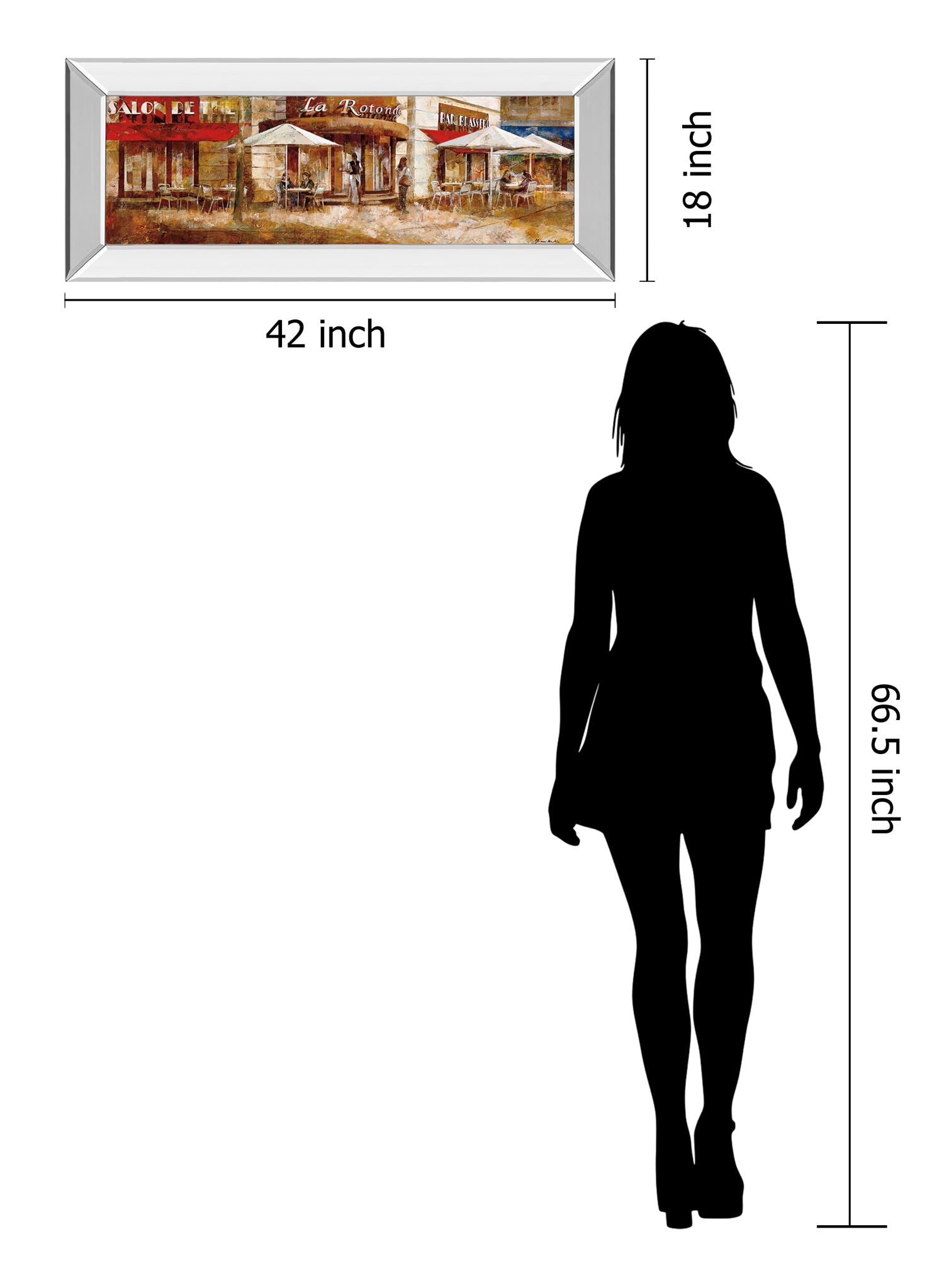 Step into the cozy world of a charming street café with this captivating wall art, where warm hues and lively scenes invite you to linger. The piece features a bustling outdoor dining area under crisp white umbrellas, rendered in rich tones of brown, red, and beige that evoke a timeless elegance. Encased in a sleek mirrored frame, the artwork reflects light beautifully, enhancing its vibrant details and adding a sophisticated glow to any living room, dining area, or office. Crafted with premium real glass for lasting clarity and protection, this ready-to-hang piece brings a touch of modern luxury and inviting ambiance to your space.