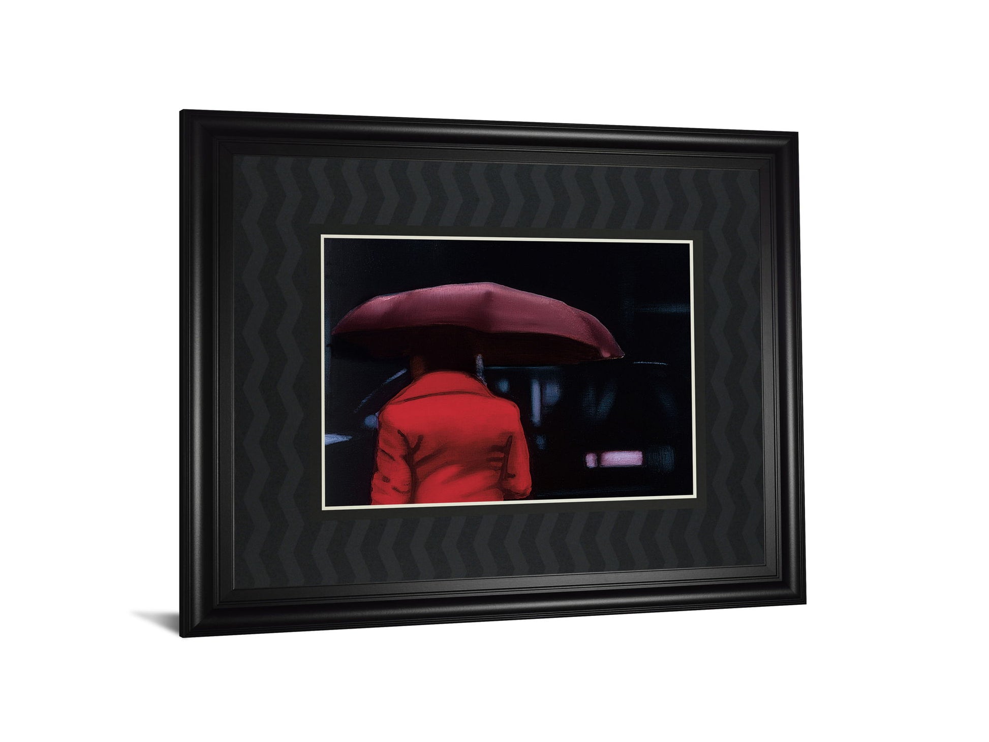 Step into a world of quiet mystery with this evocative piece, where a solitary figure cloaked in a vivid red coat and umbrella stands against a deep, shadowy backdrop. The rich contrasts and delicate textures invite contemplation, drawing you into a moment of introspection and subtle emotion. Encased in a sleek black frame with double matting and premium glass, this artwork adds a touch of refined elegance and contemporary sophistication to any living room, office, or modern space, becoming a captivating centerpiece that stirs the imagination.