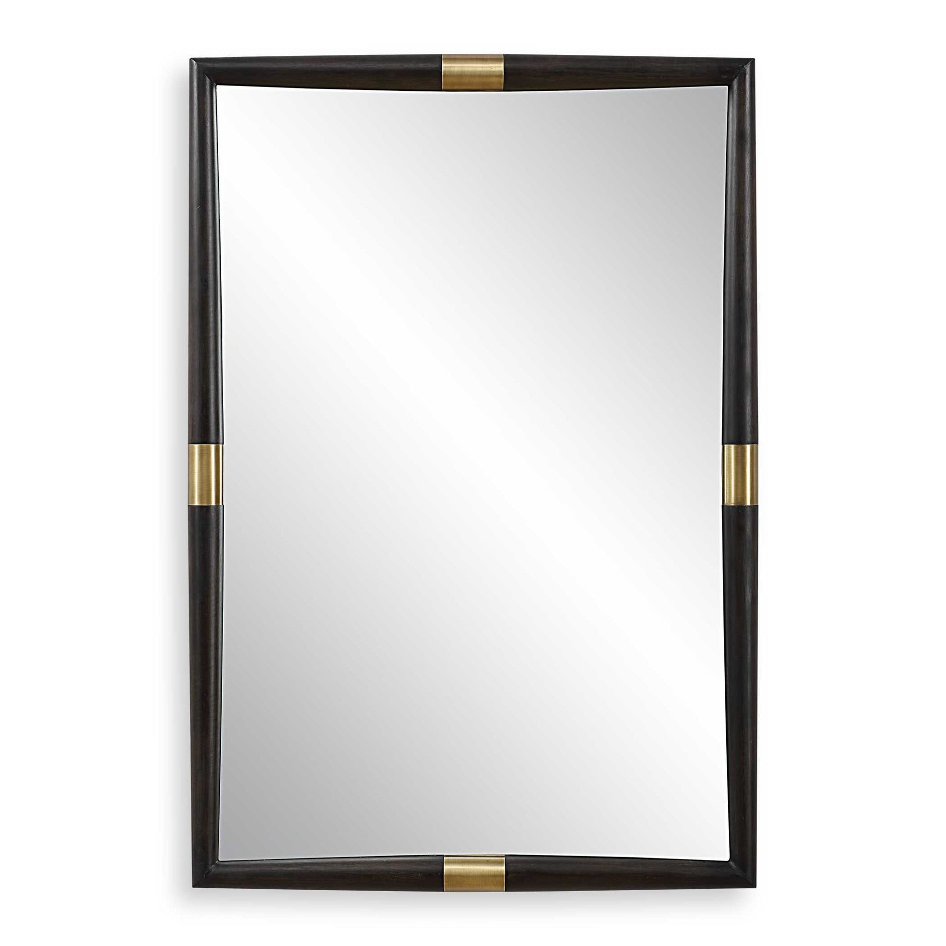 The Larkin Mirror Features A Rounded Dark Oak Wood Frame Accented By Sleek Plated Antique Brass Cuffs, Offering A Refined Blend Of Modern And Rustic Elements. May Be Hung Horizontal Or Vertical.