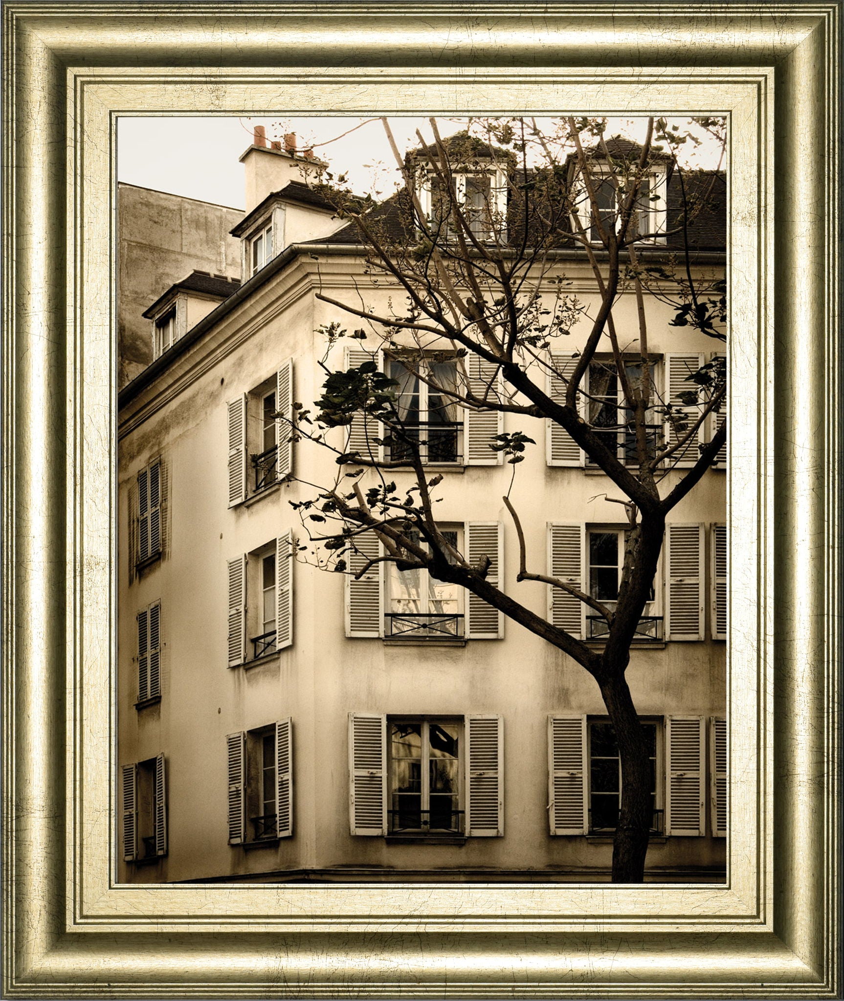 Step into the quiet beauty of a Parisian street with this evocative framed photographic print. Bathed in warm sepia tones, the image captures a classic building with shuttered windows, softened by the delicate silhouette of a tree, inviting a nostalgic pause in any room. The elegant chardonnay frame with real glass not only protects the artwork but also enhances its timeless appeal, making it a perfect addition to your living room, office, or study. Crafted with care and ready to hang, this piece brings a serene, vintage touch to your décor, celebrating the charm of urban architecture.