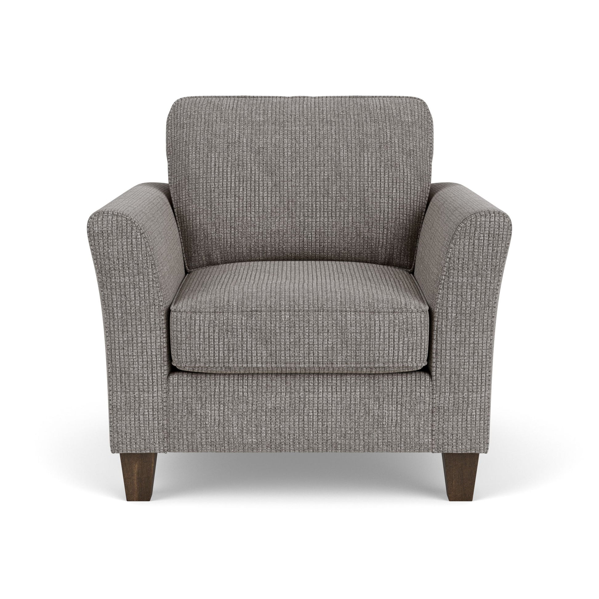 Libby is a transitional stationary style with clean lines and graceful curves. Its off-the-floor frame is complimented by square tapered legs. This chair features an elegant roll arm with a detailed welt trim. The posh and plush style of Libby fits in with many home décor spaces.
