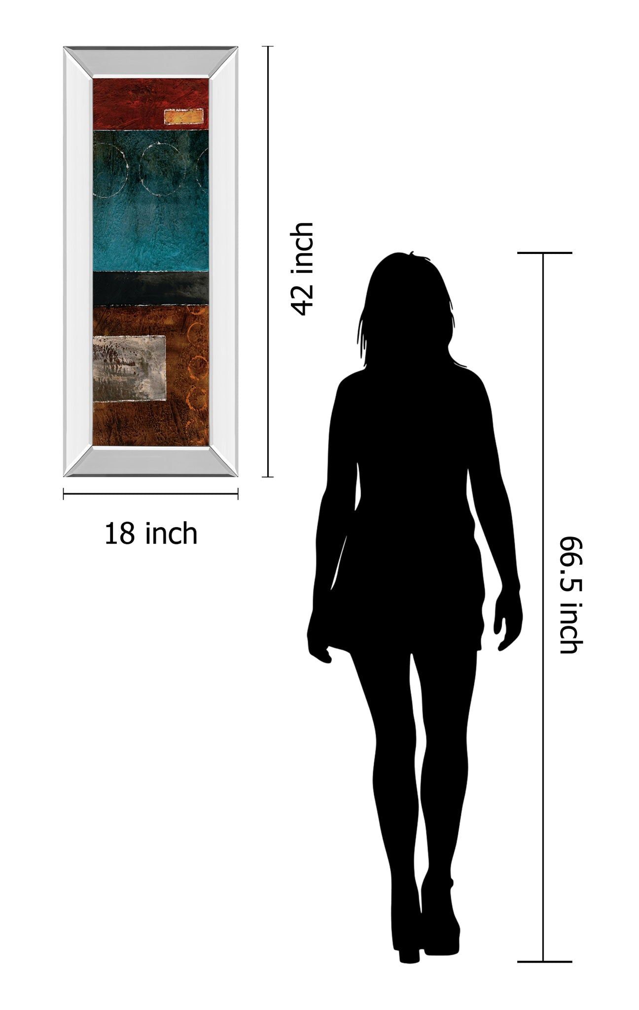 Immerse yourself in the dynamic interplay of color and texture with this striking abstract piece. Featuring bold blocks of deep teal, rust, black, and warm brown, the artwork invites you to explore its layered surfaces and subtle geometric details. Encased in a sleek mirrored frame, it reflects light and surroundings, adding a modern touch that enhances any living space, office, or hallway. Crafted with premium real glass, the piece offers vibrant color depth and lasting protection. Ready to hang and designed with expert craftsmanship, this transitional wall art brings a sophisticated yet inviting presence to your décor.