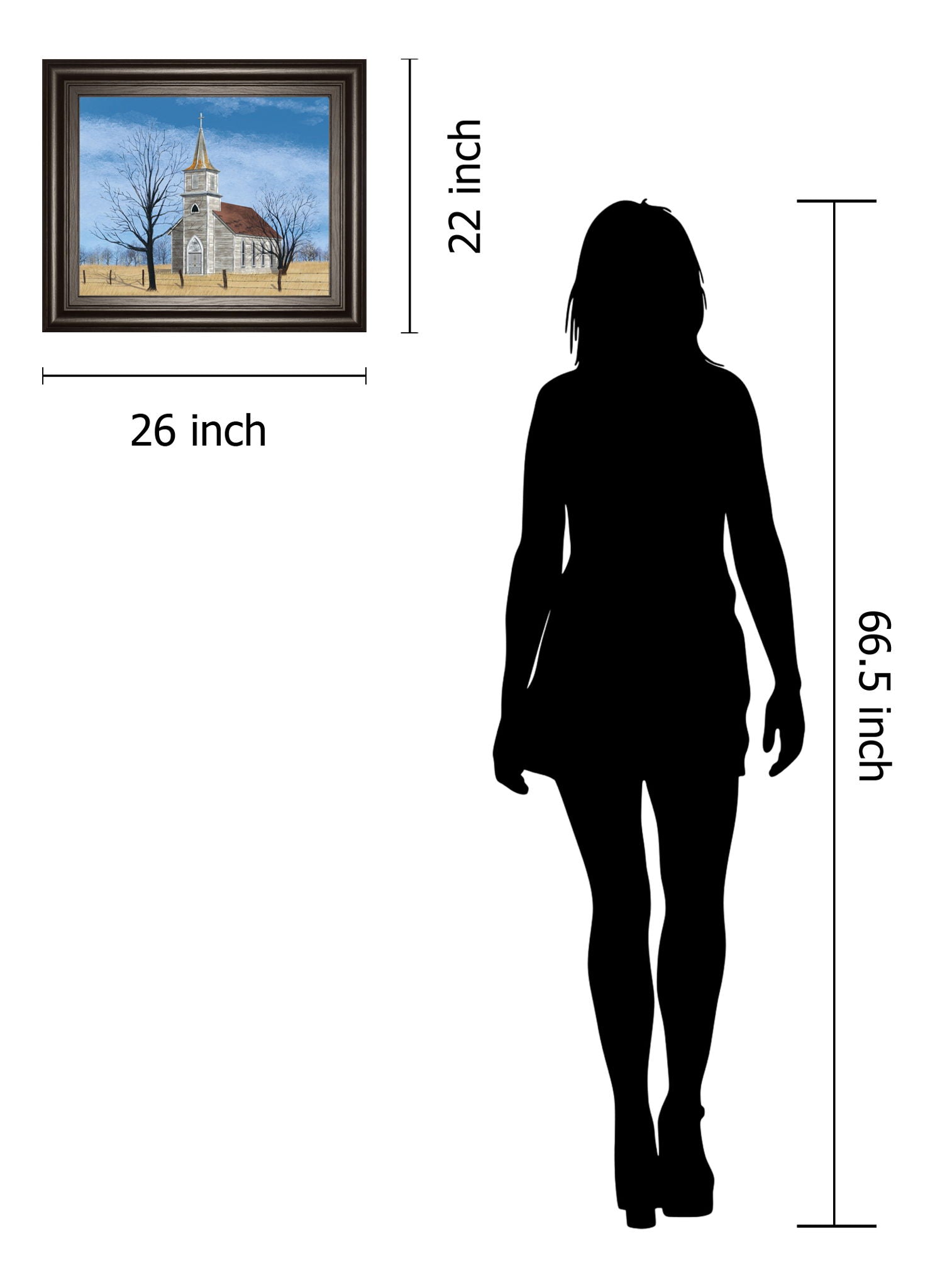 Step into a peaceful rural scene with this beautifully framed artwork depicting a quaint prairie church under a vast blue sky. The artwork captures the quiet charm of country life with its delicate brushstrokes and soft color palette of blues, beiges, and browns. Encased in a rich dark chocolate frame, this piece adds warmth and timeless elegance to any living room or office, inviting you to pause and reflect on simpler days with its nostalgic and serene presence.