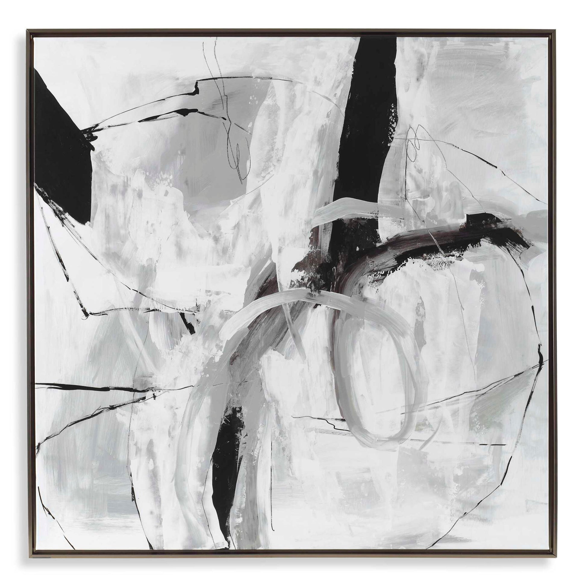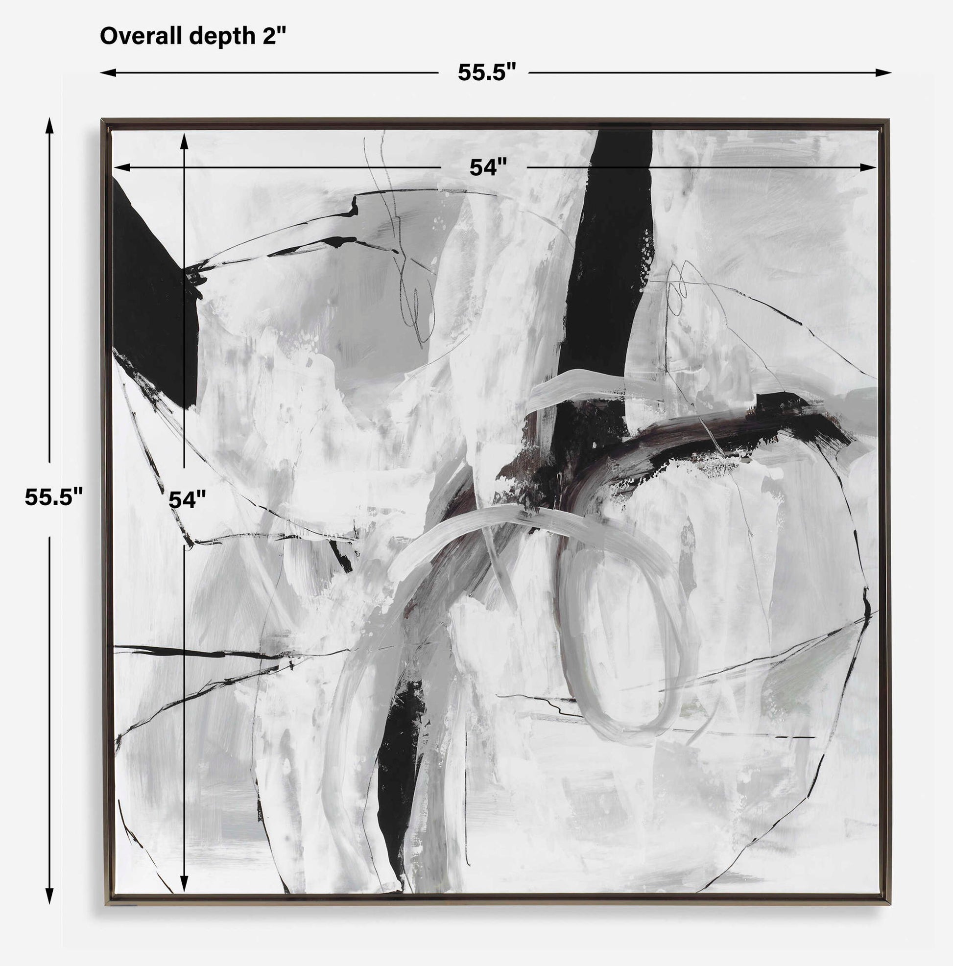 Giclee On Canvas, This Vast Abstract Features Shades Of Warm Tan, Gray And Cream Highlighted With Black Accents. Surrounded By A Simple Gallery Frame In A Bronze Gold Finish, This Piece May Be Hung Horizontal Or Vertical. Each Canvas Is Proudly Handcrafted And Printed In The USA. Artwork By PI Studio.