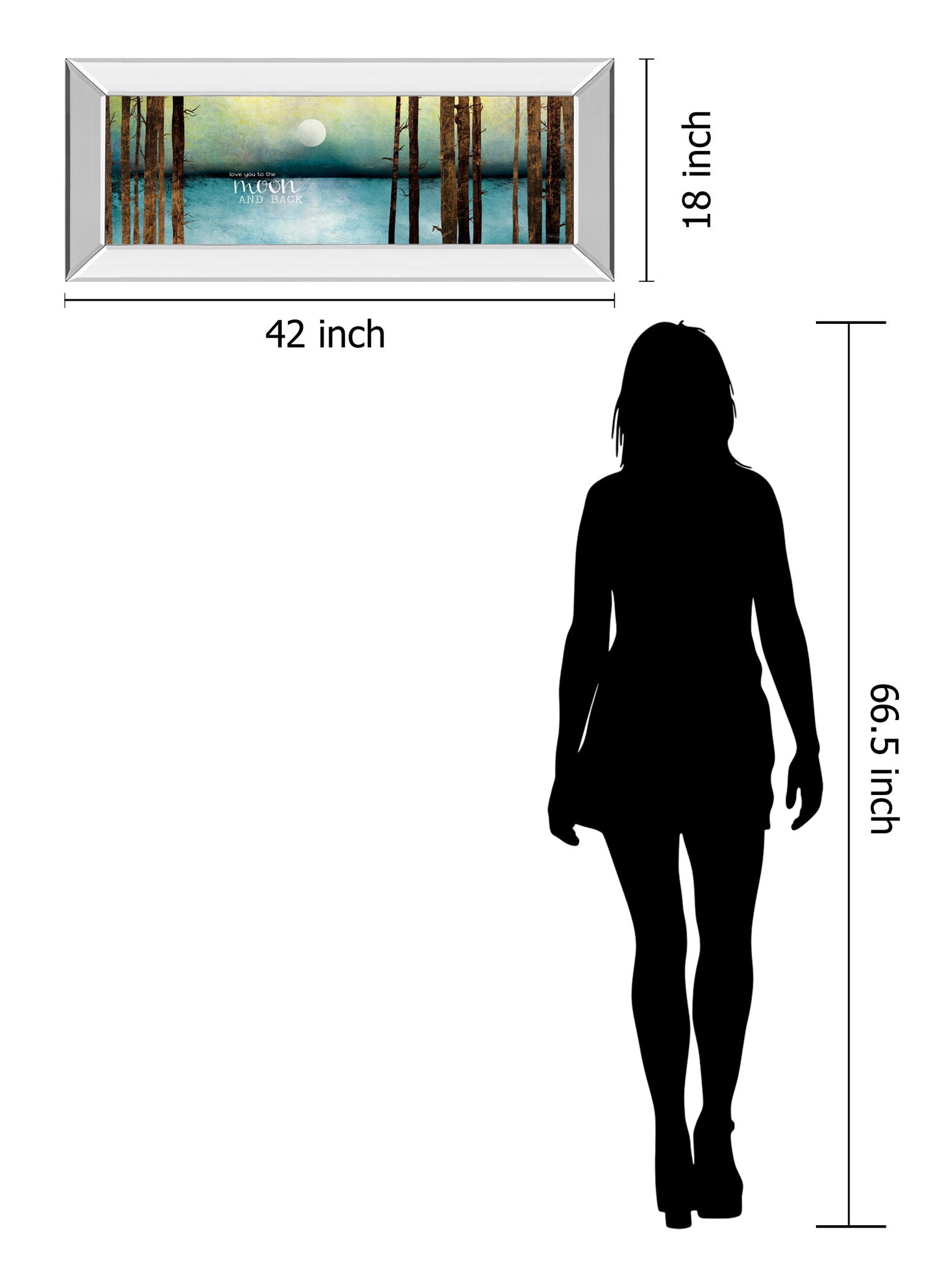Step into a tranquil night with this captivating wall art, where the gentle glow of the moon casts a serene light over tall, graceful trees. The soothing blend of blues, greens, and earthy browns creates a peaceful landscape that invites calm and reflection. Encased in a sleek mirrored frame, this piece not only enhances your space with its modern elegance but also carries a heartfelt message of love and connection, making it a perfect addition to any living room, bedroom, or office seeking a touch of nature's quiet beauty.