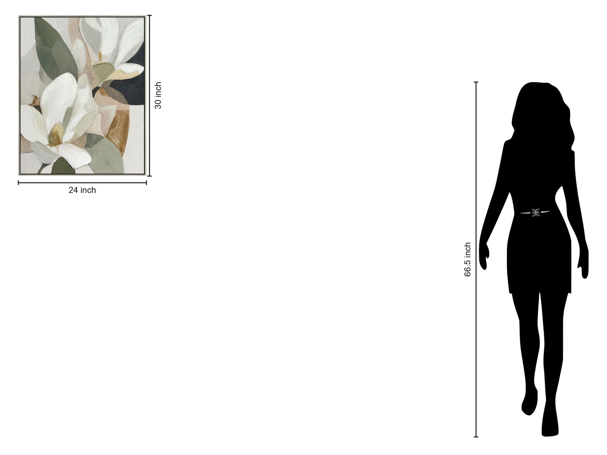 Experience the serene beauty of nature with this hand-embellished floral masterpiece. The soft, earthy tones and delicate brushstrokes bring elegance and tranquility to any space. Perfect for adding a touch of sophistication to your living room or bedroom.
