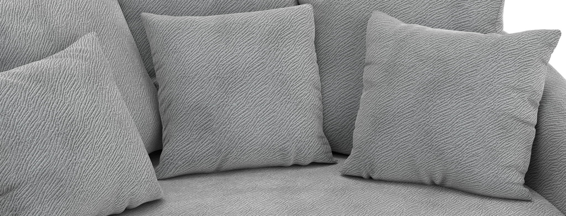 Matty is a large scaled Round Accent Cuddle Chaise and provides three back pillows and three accent pillows to form your perfect seat. Easily comfortable for two, this eclectic piece is available in your choice of three colors: Ebony, White or Pewter.